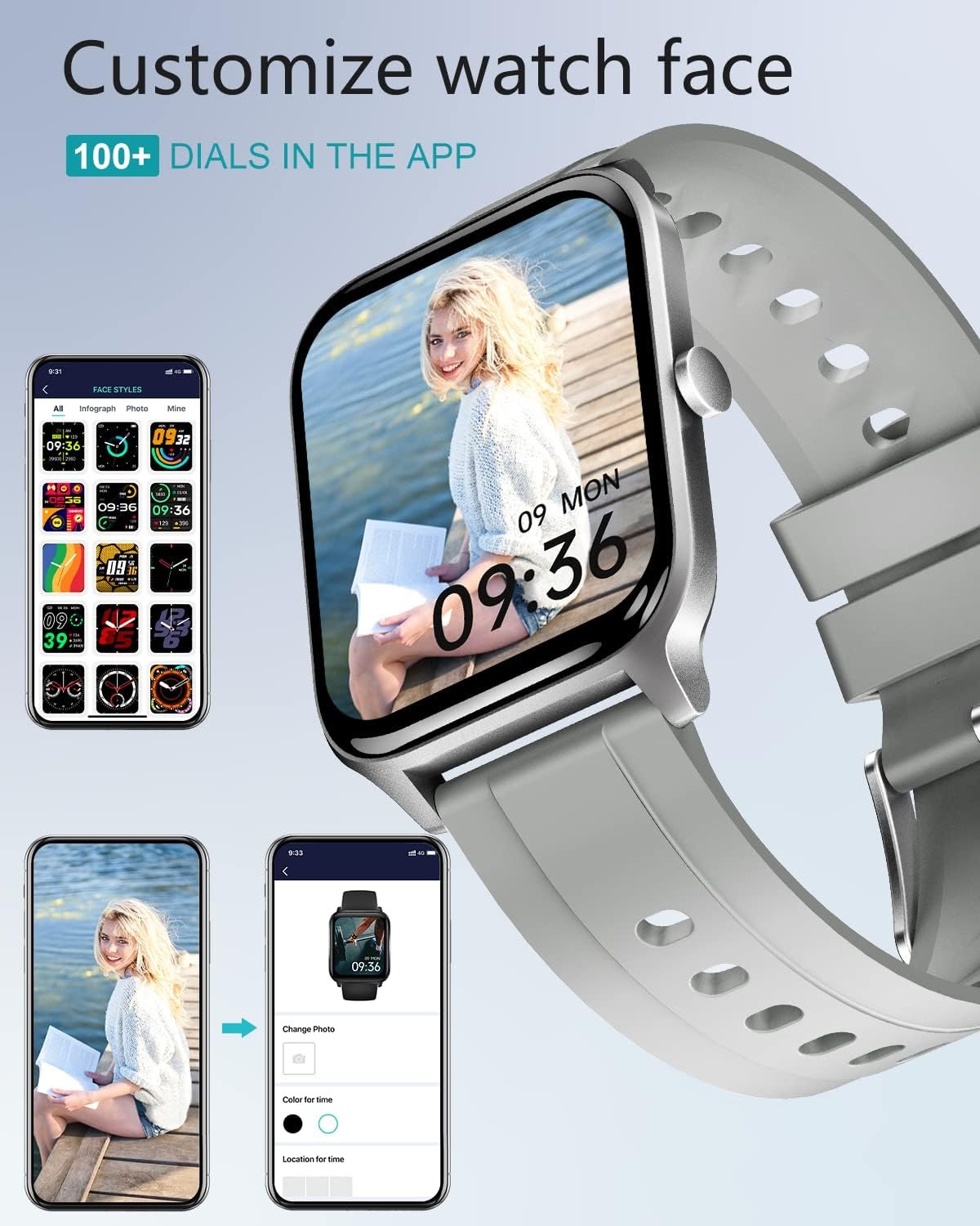 [Stylish Watch for Men Women with Customized Watch Face ] – There are a lot of stylish dials in the app for your selection, and you can choose your own photos, such as selfie, family, scenery, and pet as the watch face.