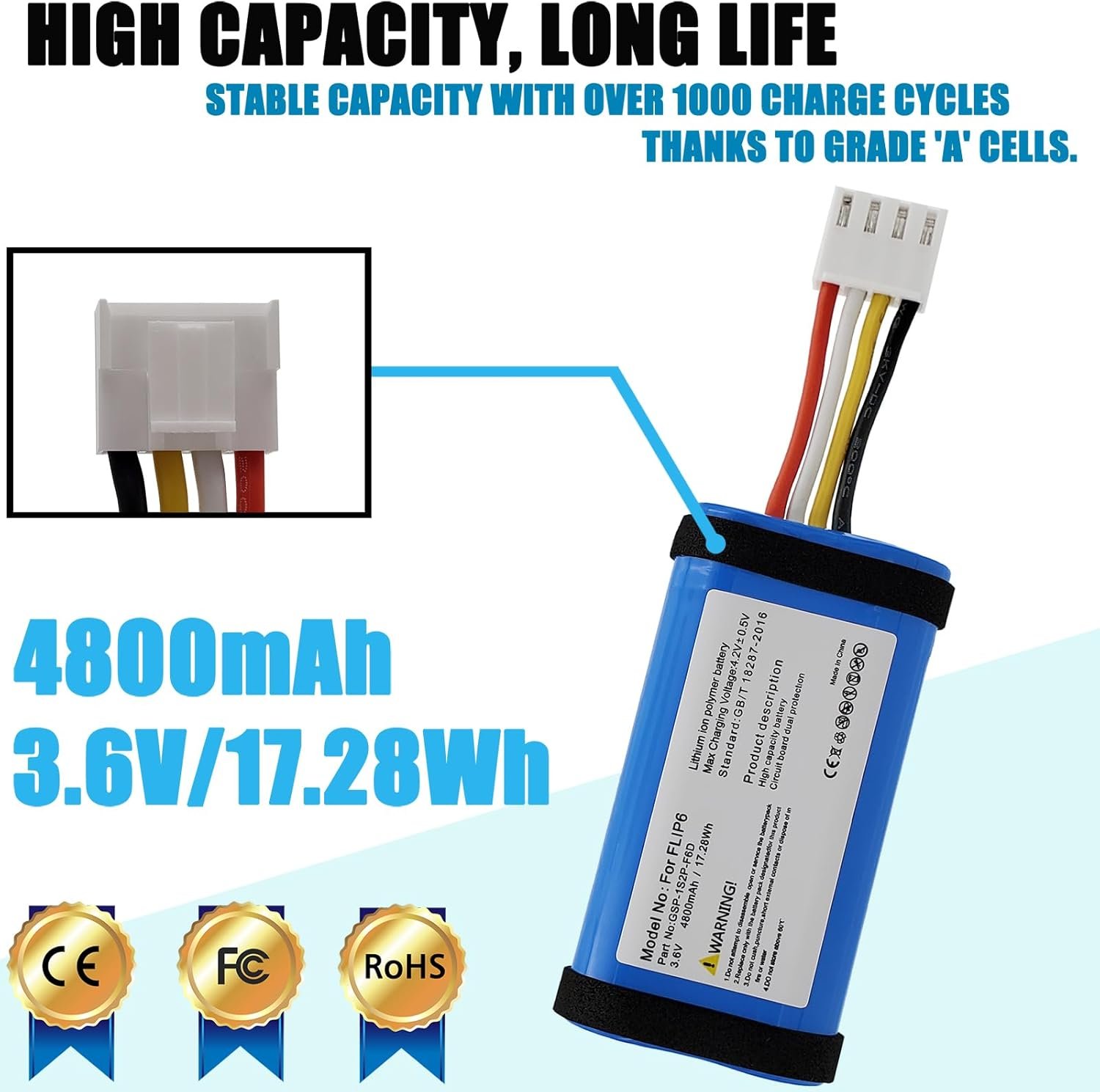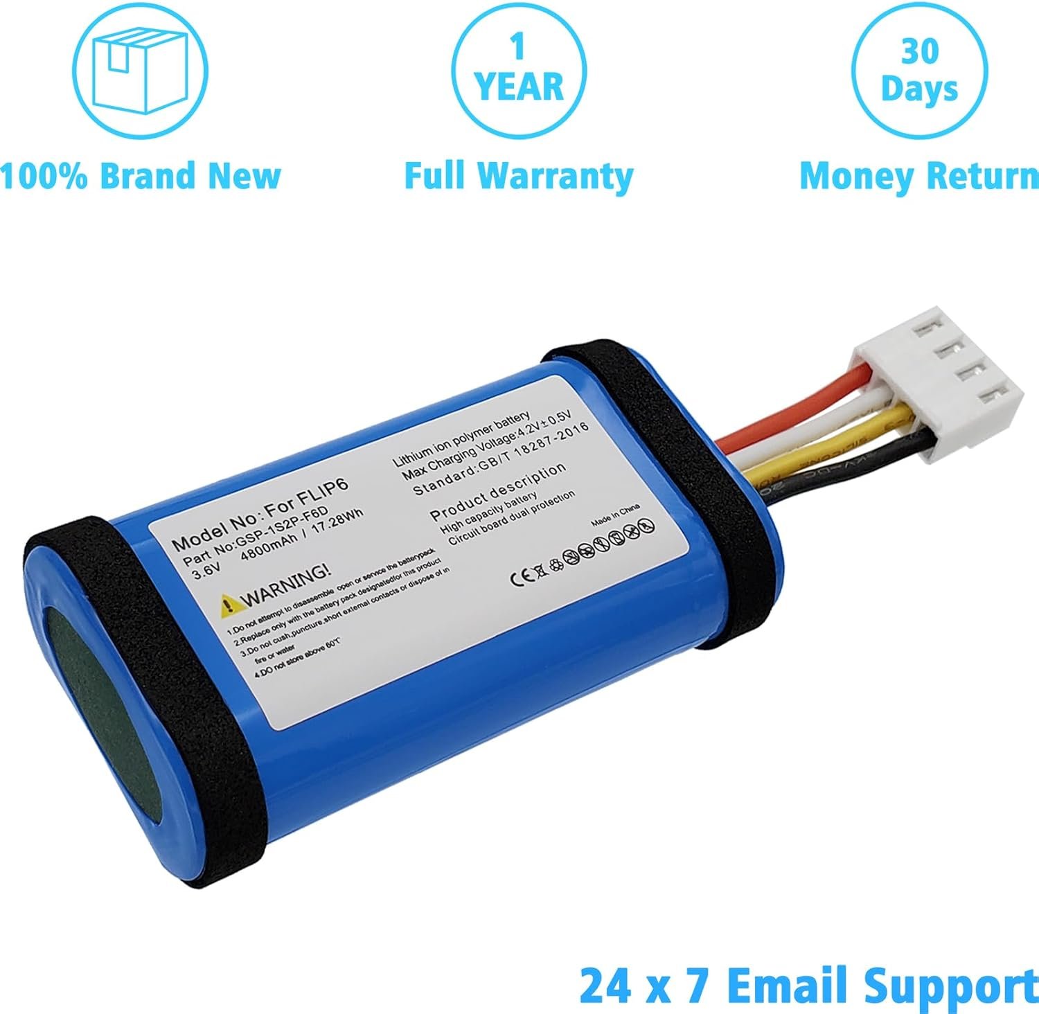 Compatible Models: For JBL Flip 6 Replace Part Number: GSP-1S2P-F6D Battery Condition : Brand New Capacity : 4800MAH Voltage : 3.6V