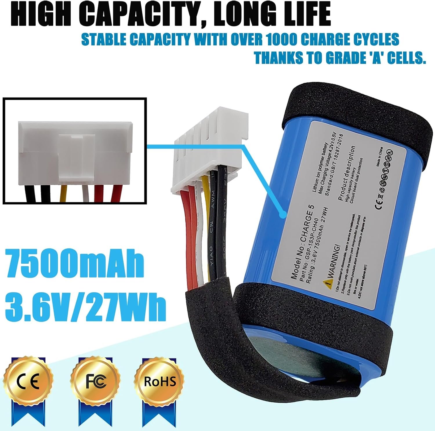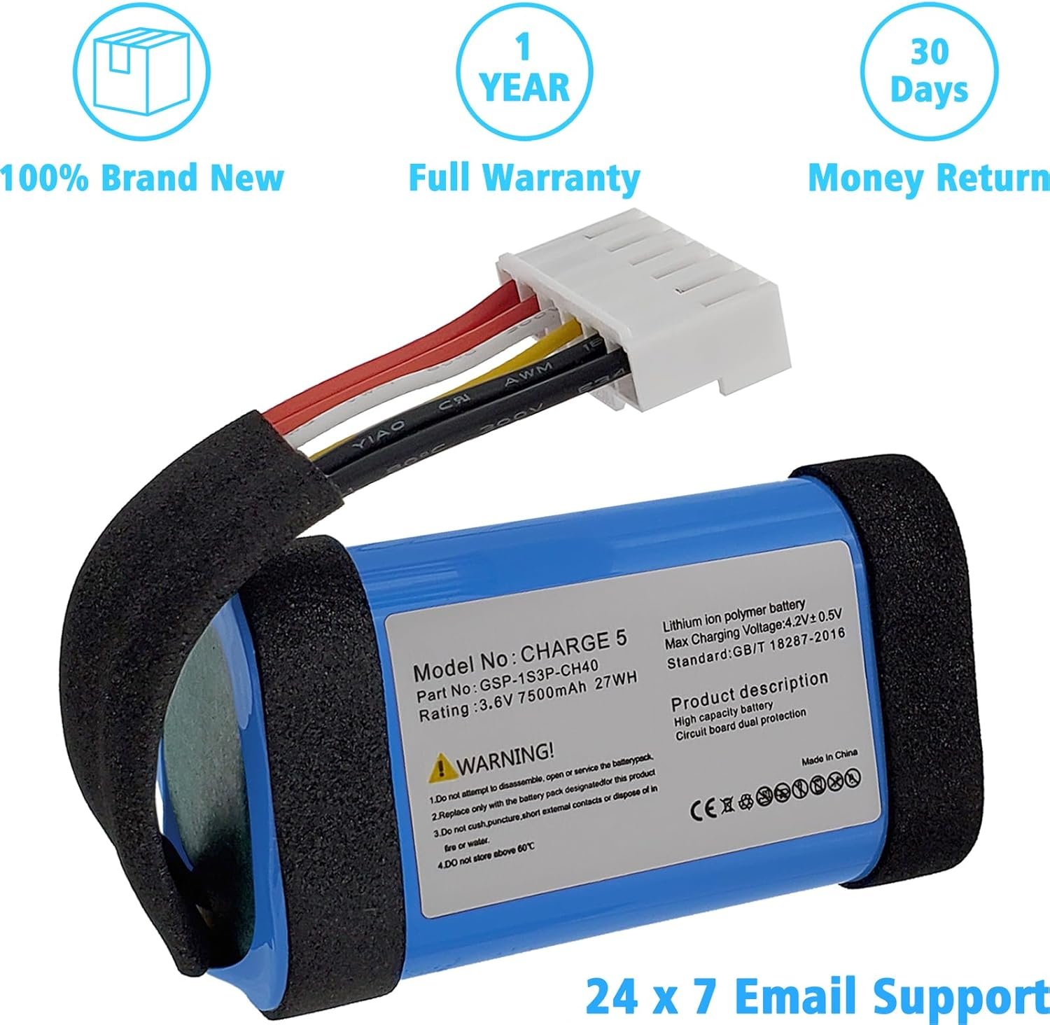 Compatible Models: For JBL Charge 5 Replace Part Number: GSP-1S3P-CH40 Battery Condition : Brand New Capacity : 7500MAH Voltage : 3.6V