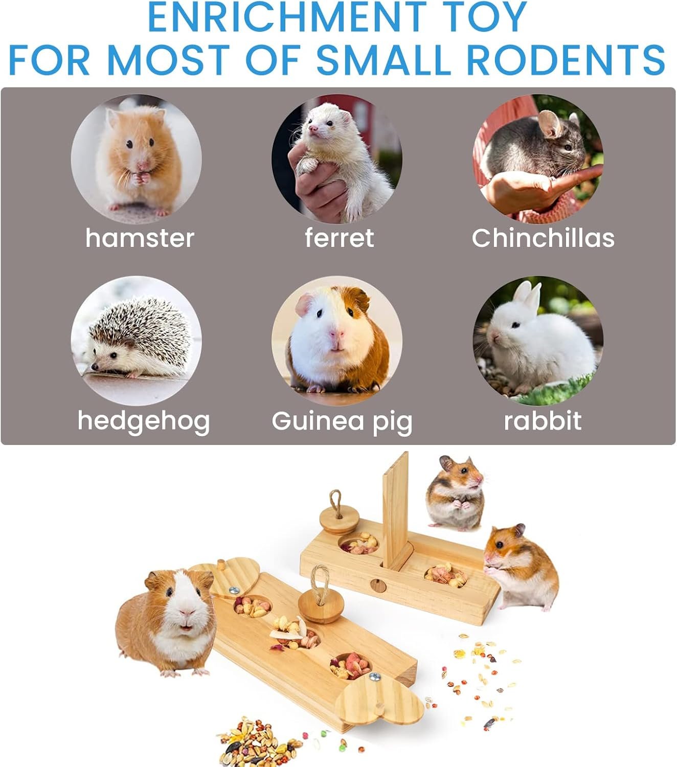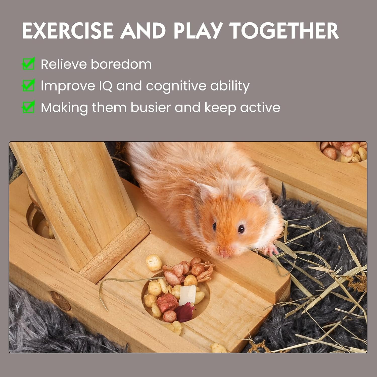 [NATURAL WOOD & SAFE FOR PET]: Our foraging toy is made of wood, smooth edge and quality craftsmanship which is healthy for rodents. It can be placed in the cage corner and integrated into the natural landscaping decor.