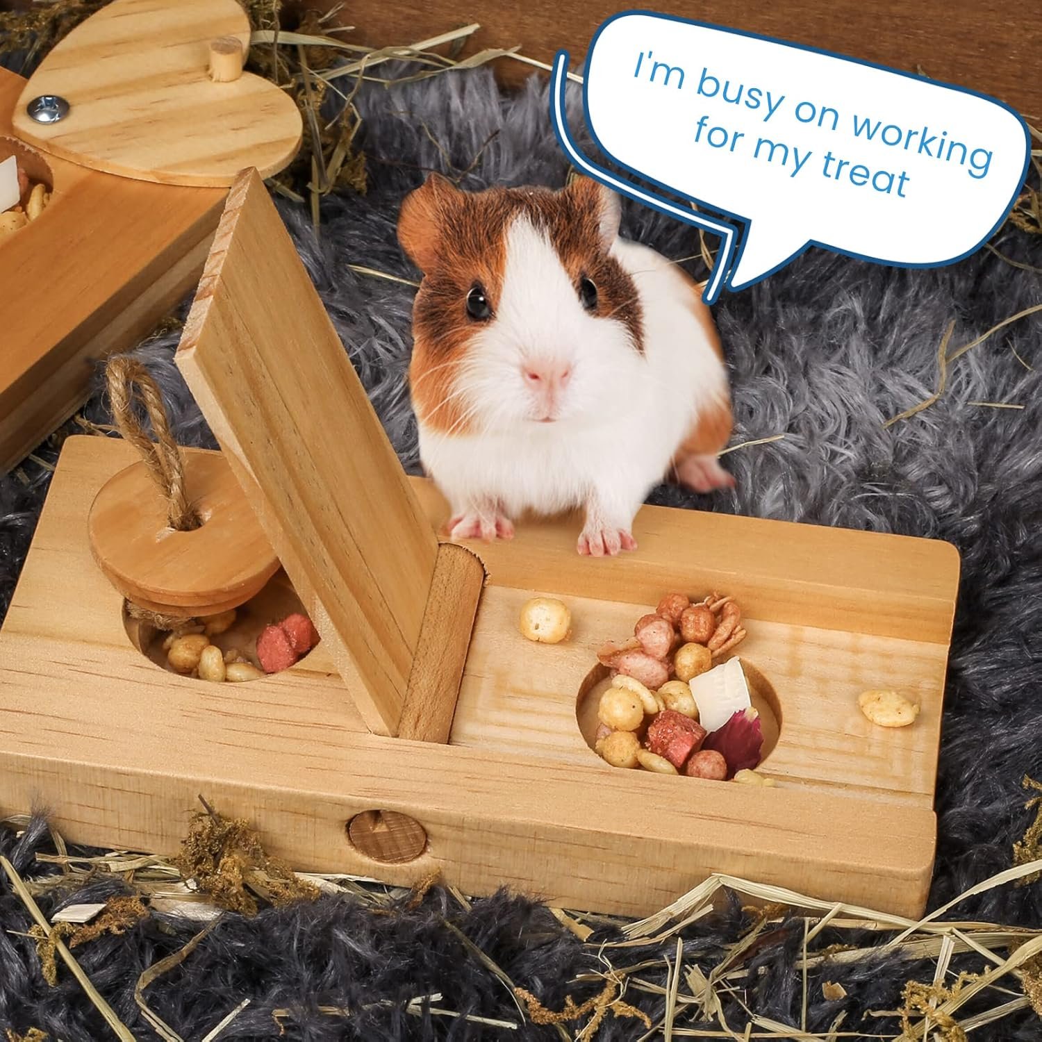 Provide mental stimulation: Rabbit,guinea pig ,chinchilla and other small animals are very intelligent,the wooden enrichment toys allow you to boost their IQ with brain games.Indulge pet’s natural foraging instincts: Pets will use their sense of smell and brain power to sniff out the hiding tasty snack which provides a rewarding brain game for them.Fight boredom:If you have no time or energy to play with your pets, fight boredom and loneliness with a fun toy. This hamster toy offer hours of entertainment, exercise, and overall fun. Also can keep pets busy while you are at work.Bonding activity for you and your pet: It’s a win-win because the toy keeps pet happy and owner entertained! let them feel your love and care!