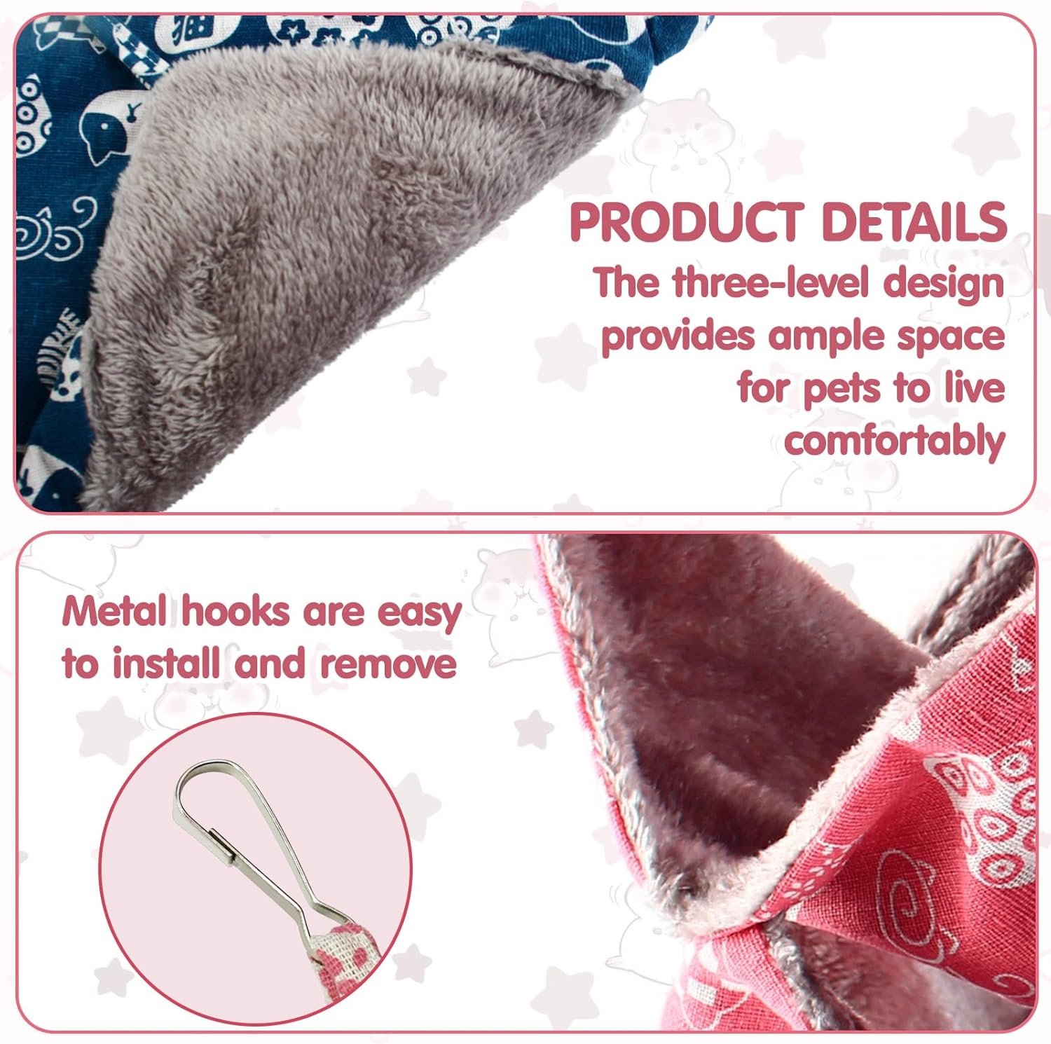 More Other Uses: These multifunctional pet beds can be hung in the cage or placed flat. Your pet can play, sleep at the bottom, or rest on top, offering versatile comfort and enrichment