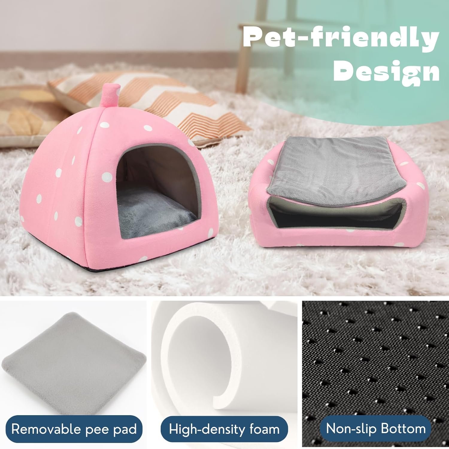 Warm and comfortable: Our guinea pig hideout is made from ultra-soft plush fabric, providing a warm and comfortable environment. It creates a place for your furry friends to relax and feel secure. Its removable urine pad ensures cleanliness while adding an extra layer of comfort.