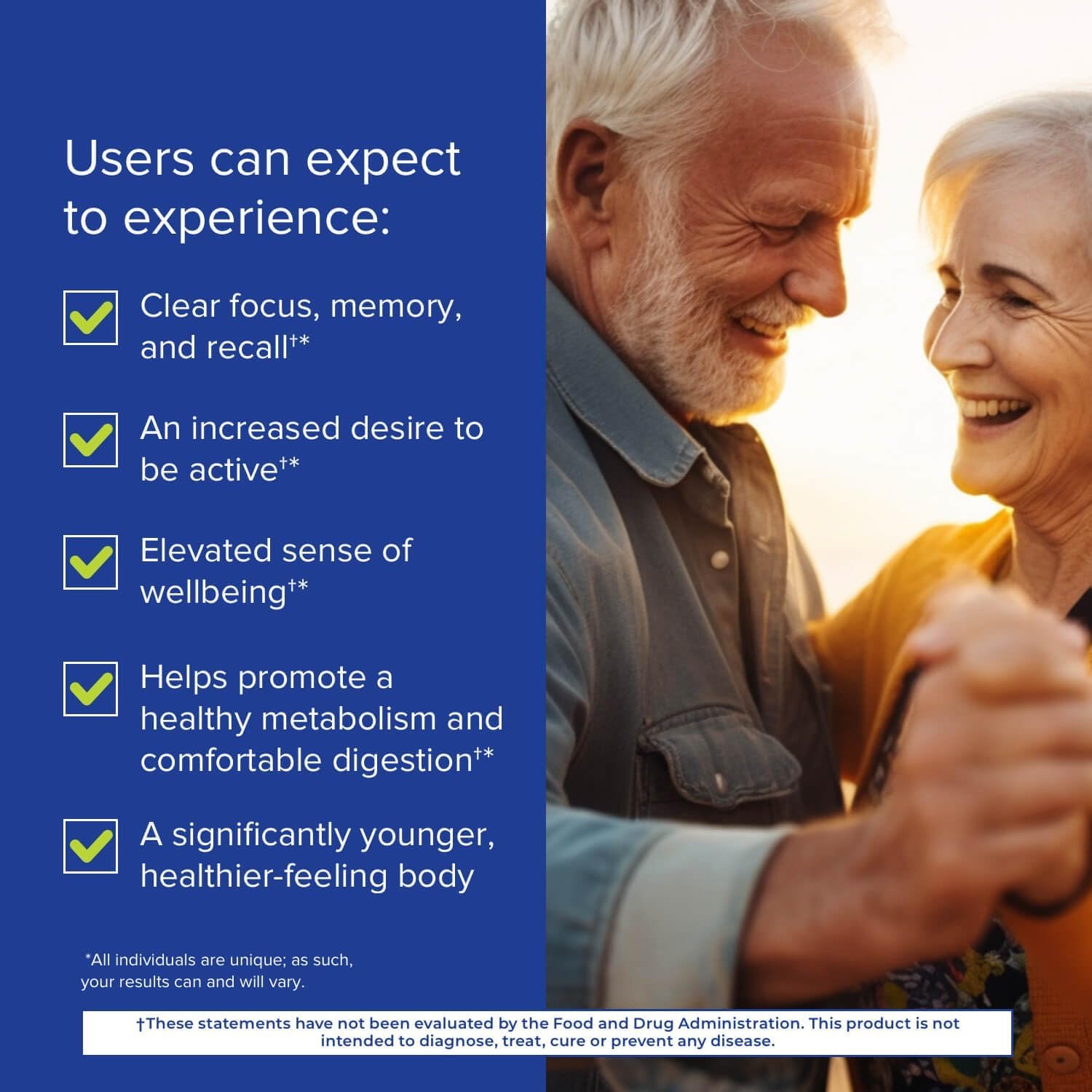 Feel an elevated sense of well-being*: By targeting autophagy and circadian cycles, Bio Sync aims to enhance overall well-being. Autophagy is the body’s natural process of cellular recycling and renewal, which helps the body eliminate damaged cells and promote a healthier cellular environment. By supporting this process, Bio Sync may contribute to an increased sense of well-being.