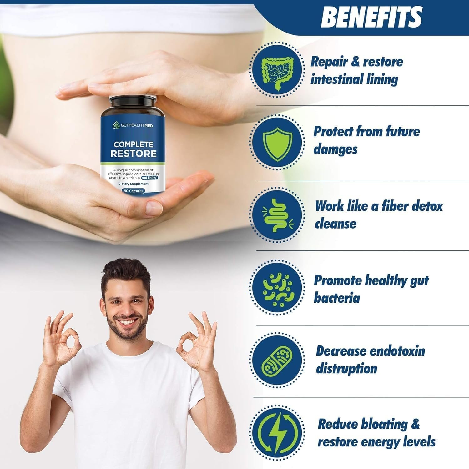 Complete Total Full Restore is meticulously designed to foster a balanced and flourishing gut microbiome, ensuring an ideal setting for effective digestion. It stimulates the proliferation of beneficial bacteria essential for gastrointestinal health, enhancing your body’s inherent digestive functions.