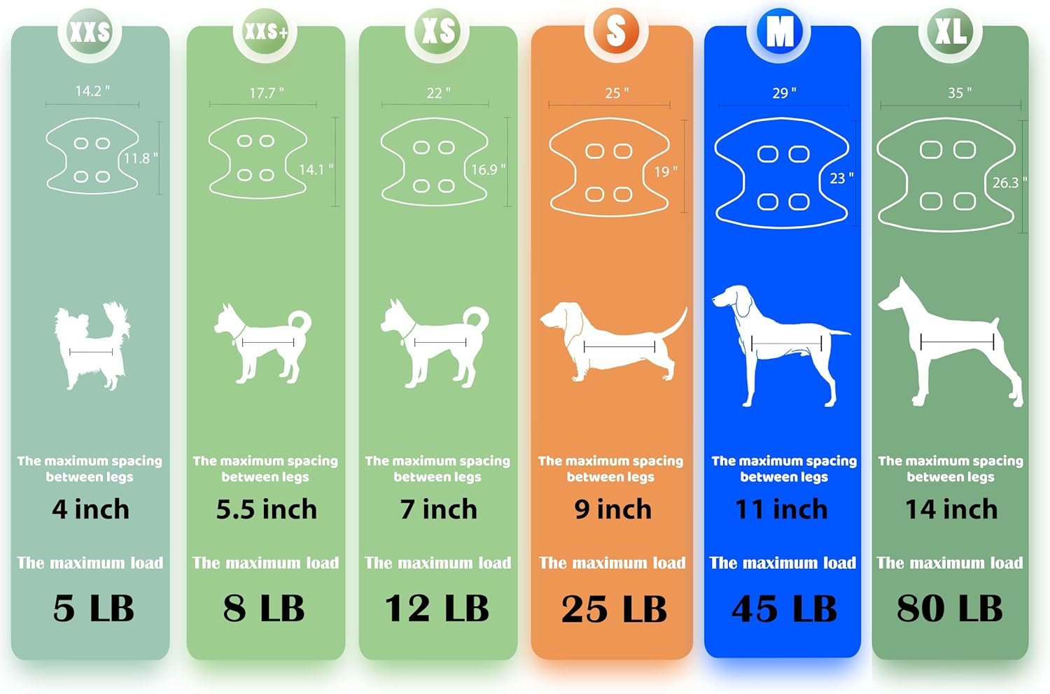 🐕 [ Choose the Right Size and Weight ]: Please read the size chart and measure the spacing between the Front and Rear Legs (3 – 5.5 inches) / Weight (Under 8 lb) for your pets before purchasing. If you have another question, please connect us.