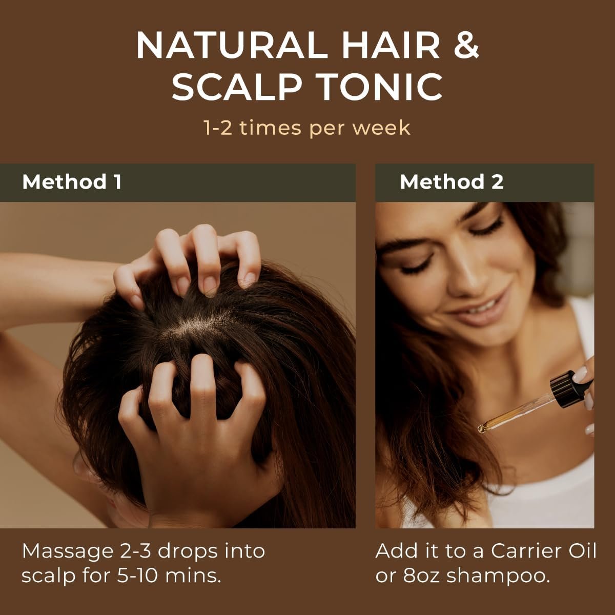 ROSEMARY ESSENTIAL OIL FOR HAIR. Rosemary oil for hair has potential benefits that may enrich hair care routines. Massage 4-5 drops into the scalp 20 mins before bath 1-2 times a week