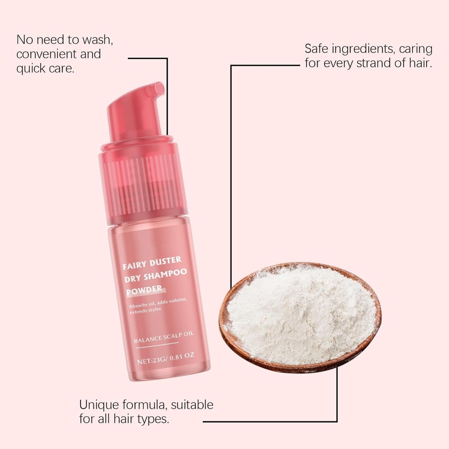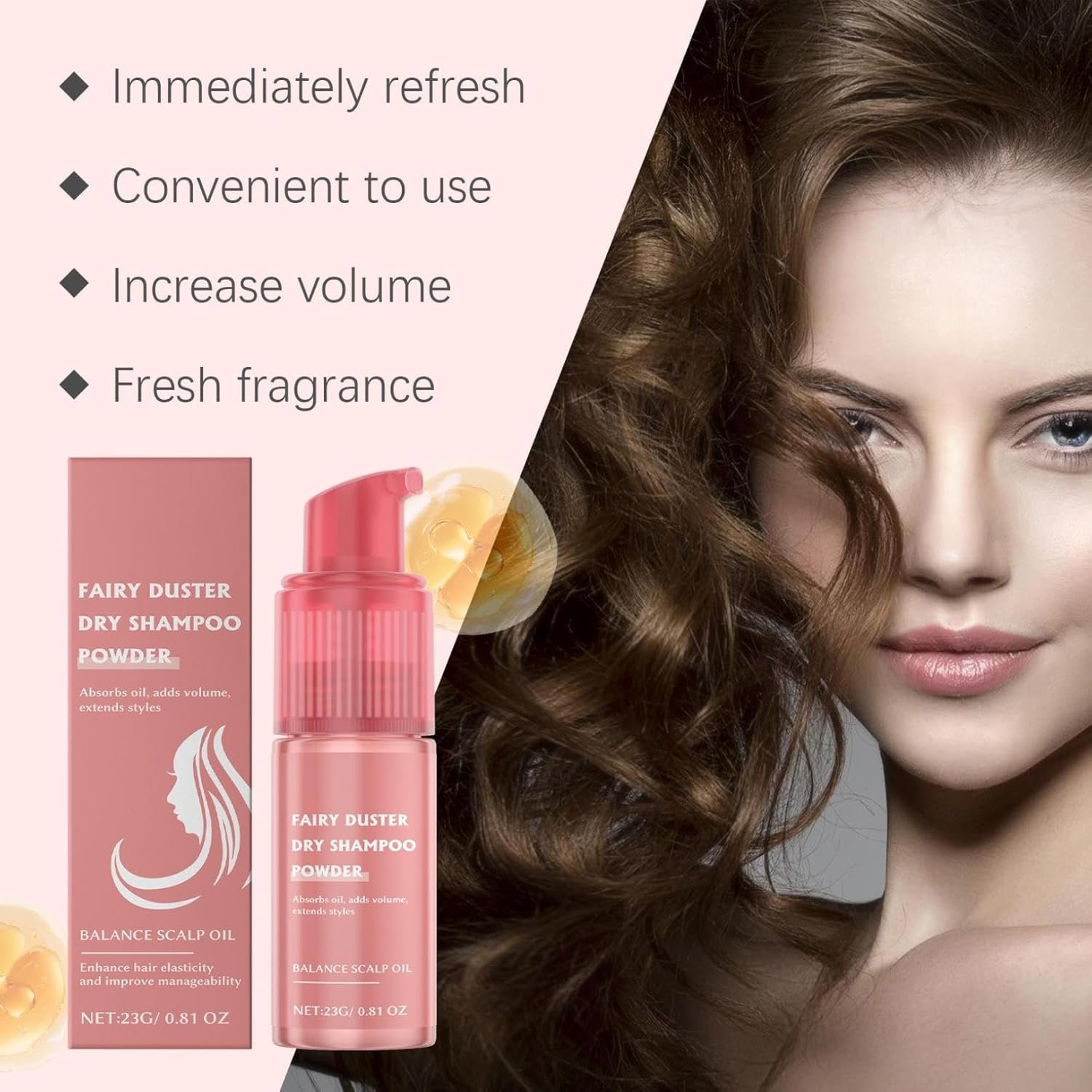 【Dry Shampoo】 : Dry Shampoo absorbs sweat and odor, leaving your hair fresh , and can be easily used without water.