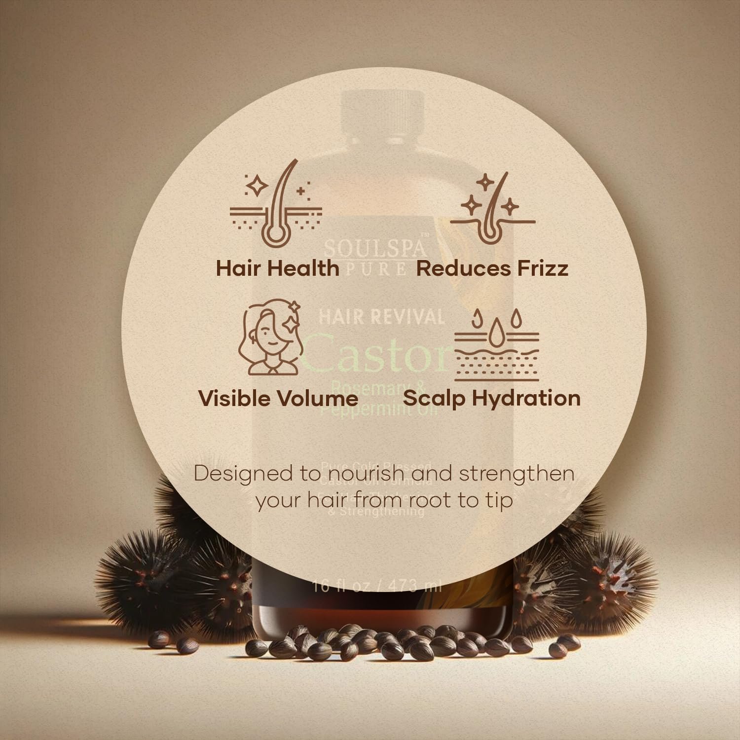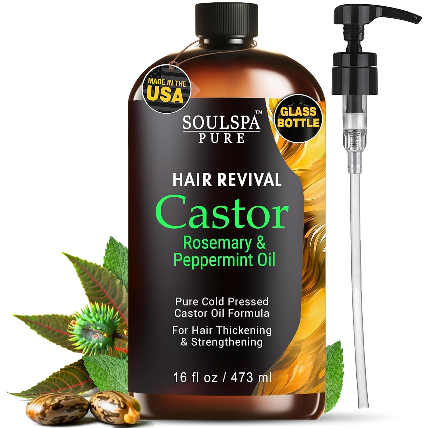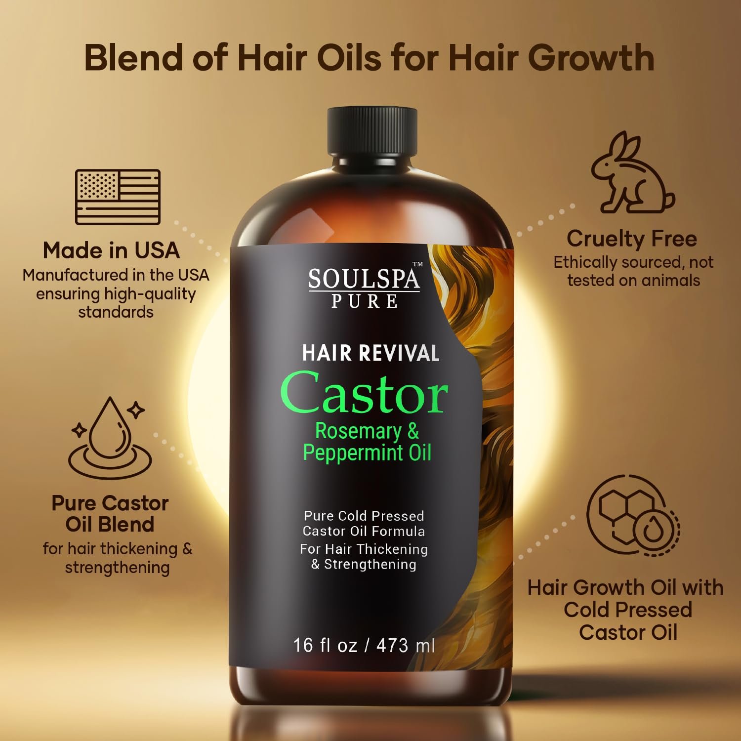𝐂𝐚𝐬𝐭𝐨𝐫 𝐚𝐧𝐝 𝐑𝐨𝐬𝐞𝐦𝐚𝐫𝐲 𝐎𝐢𝐥𝐬 𝐟𝐨𝐫 𝐇𝐚𝐢𝐫 𝐆𝐫𝐨𝐰𝐭𝐡: SOULSPA Pure Hair Oil combines natural hair growth oils castor oil, rosemary oil & peppermint oil offering a natural solution to nurture hair follicles for increased hair density