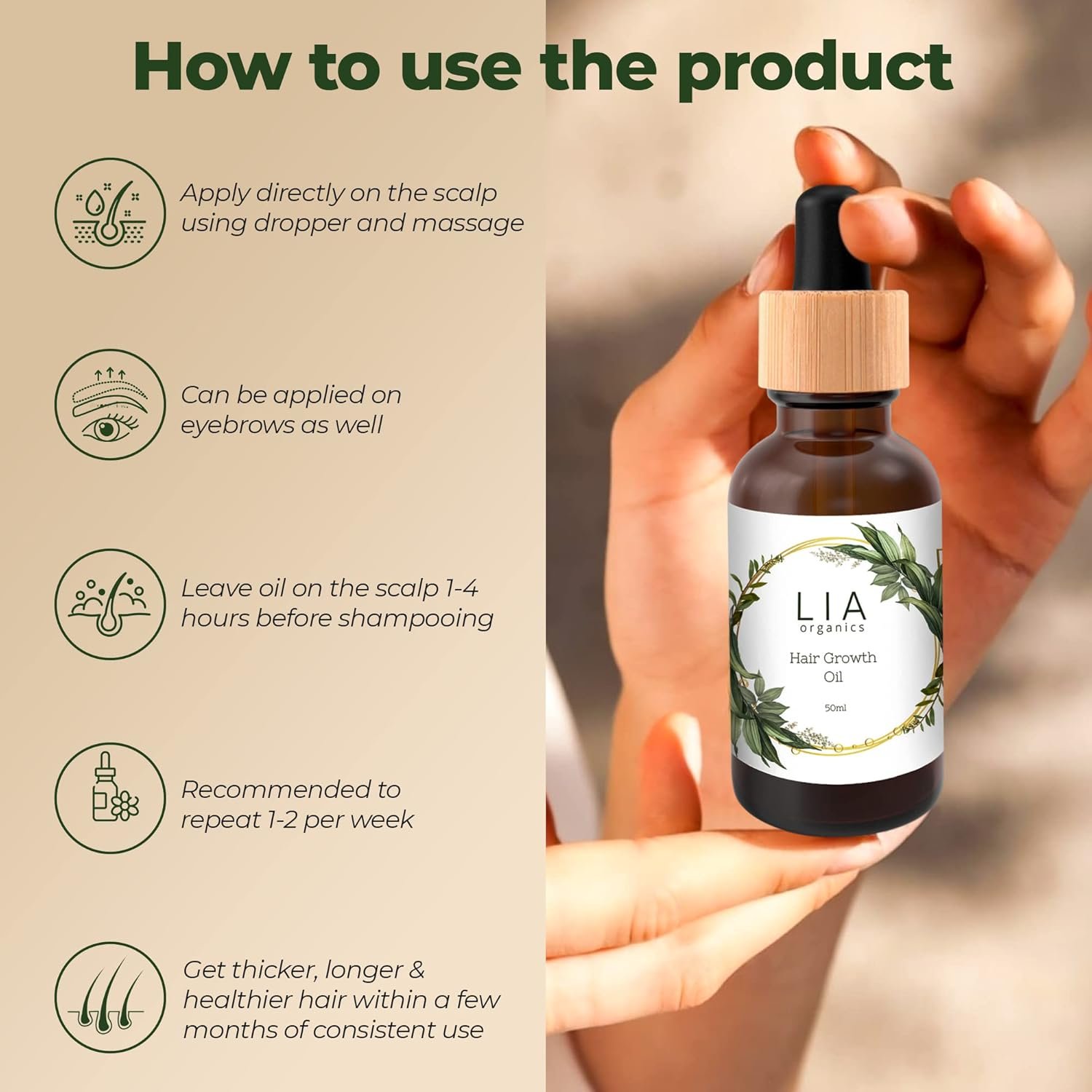 -NOURISH AND STRENGTHEN HAIR AND SCALP- These key ingredients in Lia Organics hair growth oil will speed up hair growth and stimulate new baby hairs.