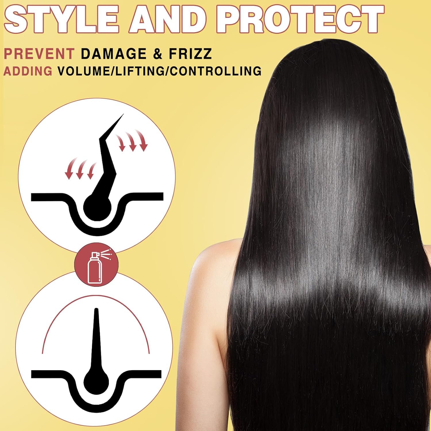 【Adding Hair Shine】Our heat protection spray is designed to make hair healthier and stronger while you style it, rejuvenating dull hair and adding volume, volume and shine.
