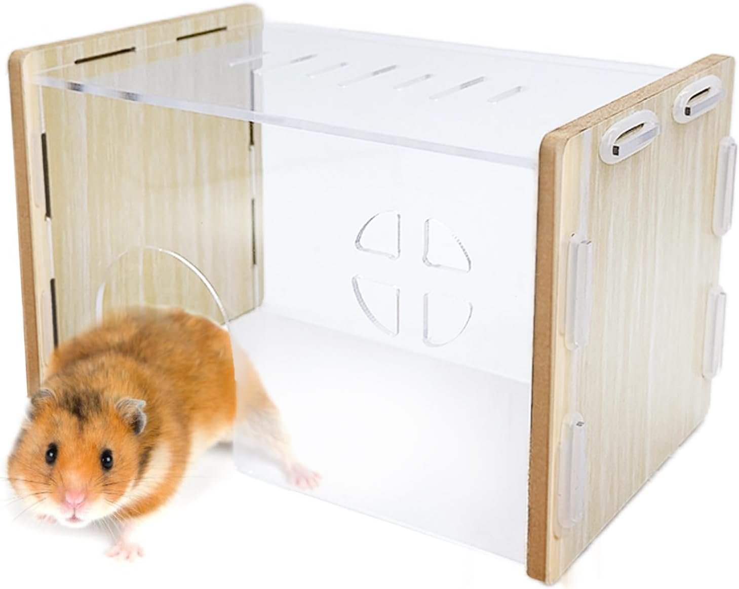🐹【Easy to clean】Our hamster hideout is made of clear acrylic material that is easy to clean and maintain, ensuring a hygienic living space for your hamster.