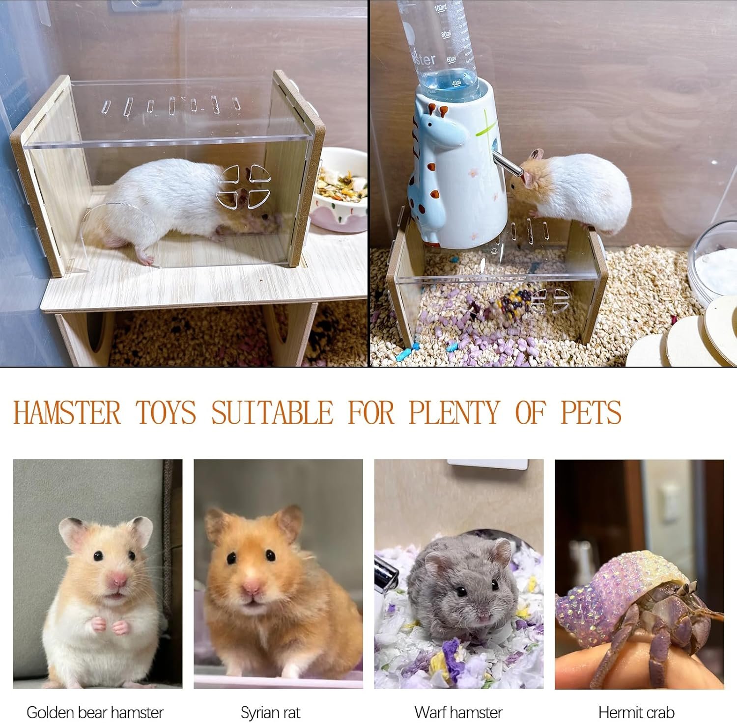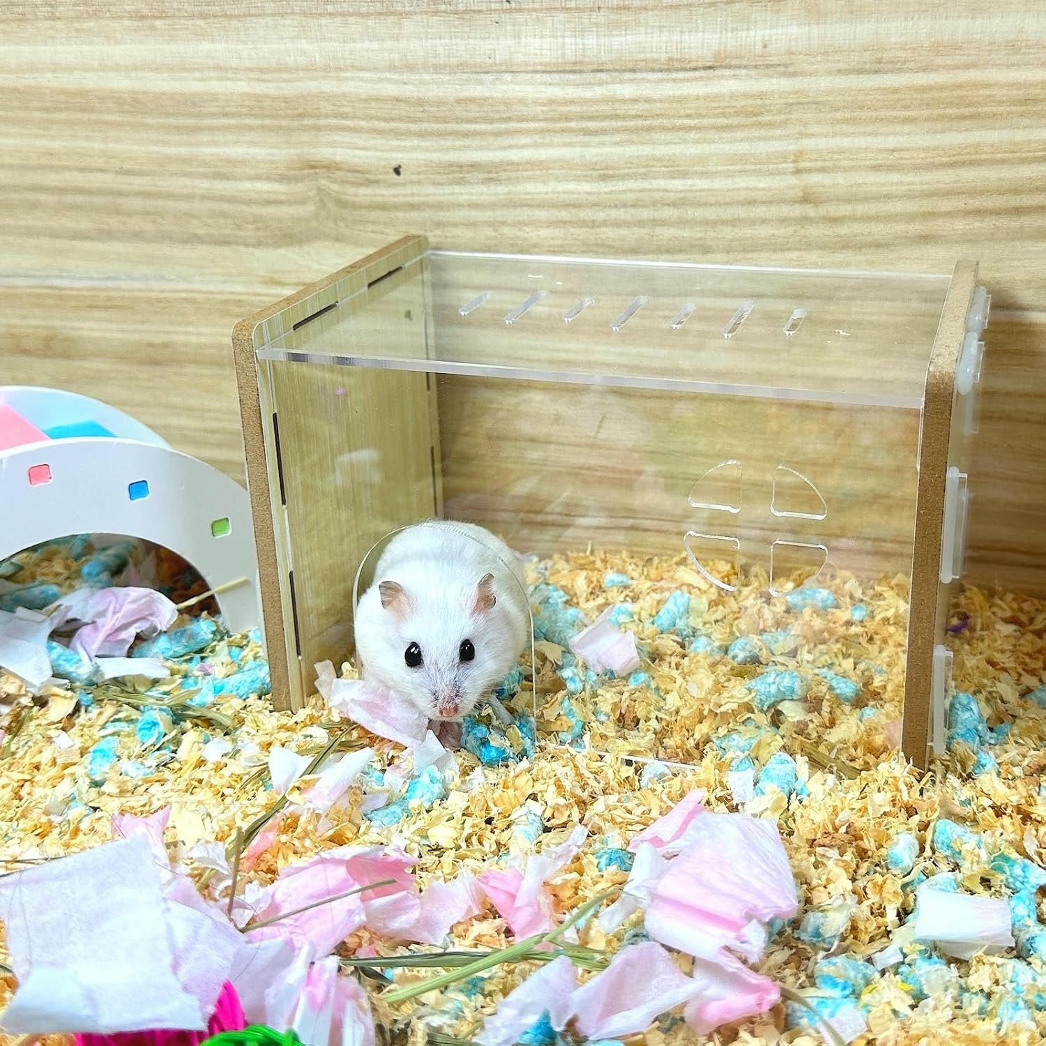 🐹【Transparent Acrylic Hideout Design】Our hamster hideout house is made of acrylic material, which is easy to observe the activity of hamsters at any time and increase the pleasure of viewing. At the same time, it also helps to take photos and videos, so that owners can record the cute moments of hamsters.