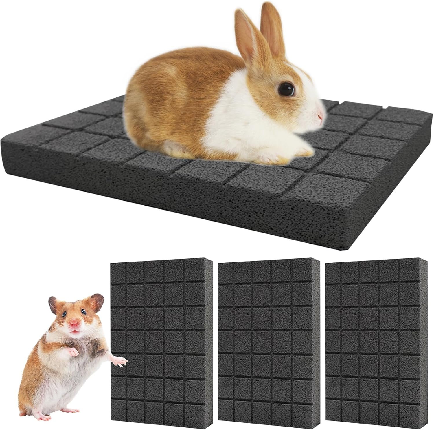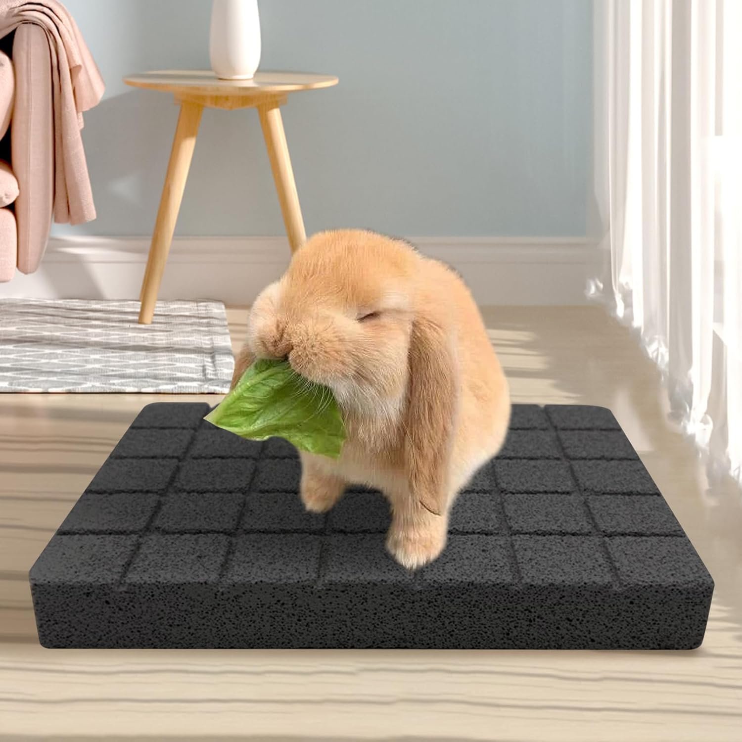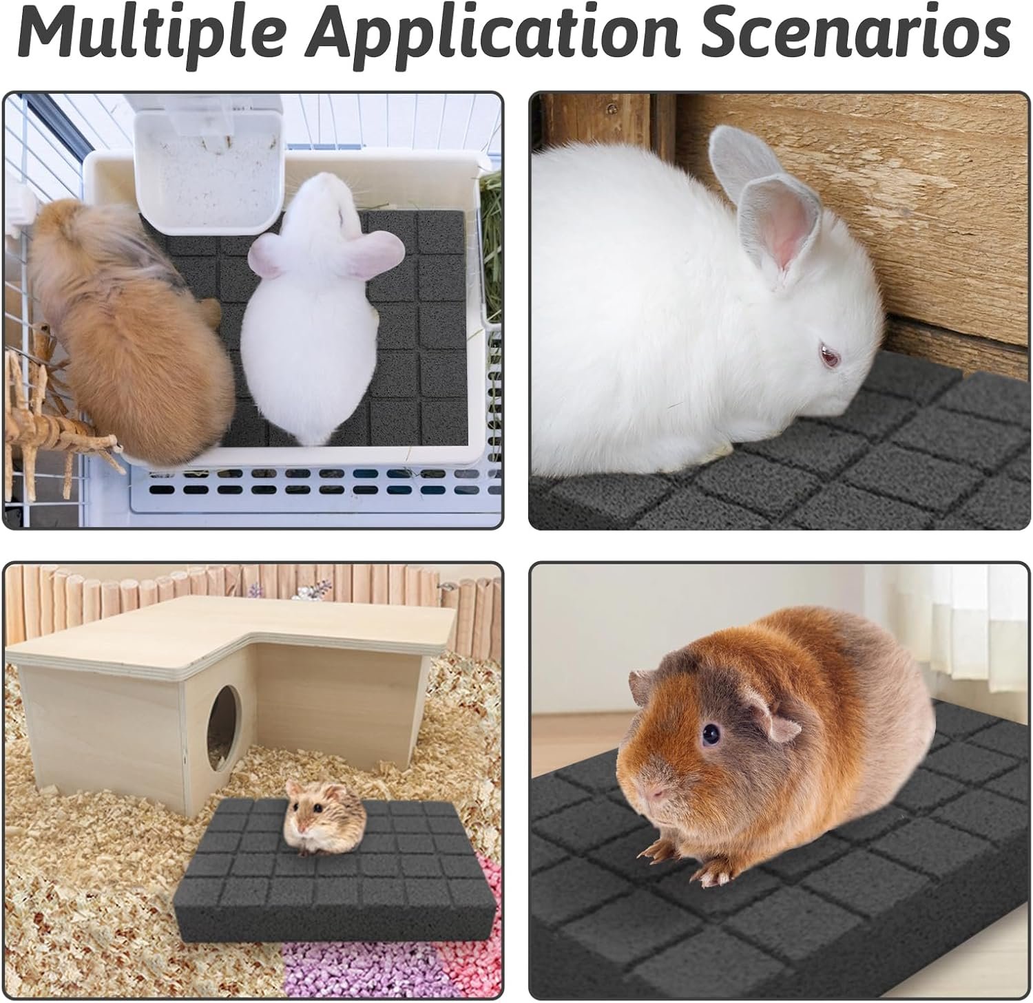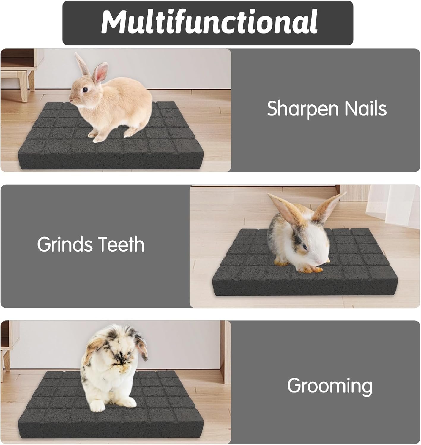LAVA ROCK : Rabbit scratching pad is made of natural lava rock, ideal material for rodent pets grinding their teeth.Put the bunny scratch pad into the cage when you use it. The small animals will play bunny scratch board by themselves, grinding their teeth and grinding their claws