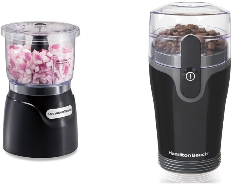 3 cup chopper with patented stack & press design for easy chopping. Removable grinding bowl of coffee grinder is dishwasher safe.
