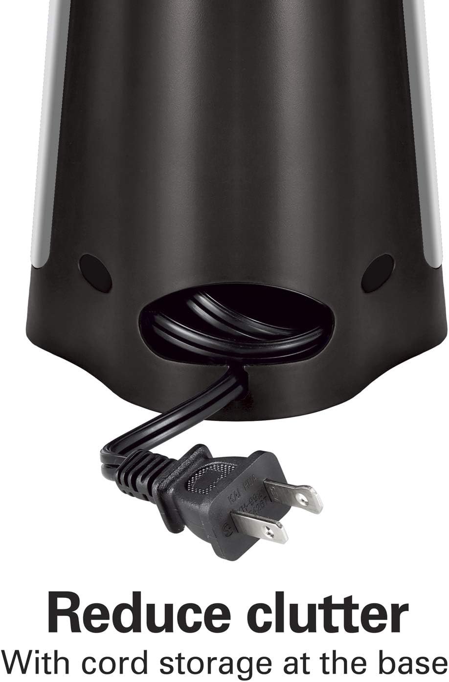REDUCE CLUTTER: Cord storage at the base of the can opener helps keep countertops and cabinets clutter-free.