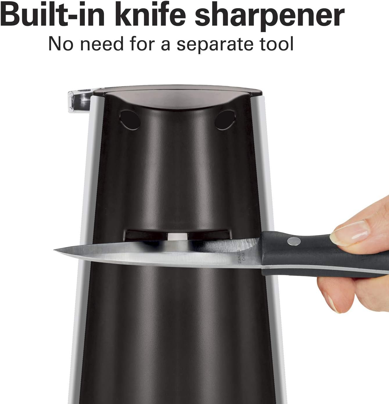 BUILT-IN KNIFE SHARPENER: Keep all your kitchen knives sharp without having to buy a separate sharpening tool.