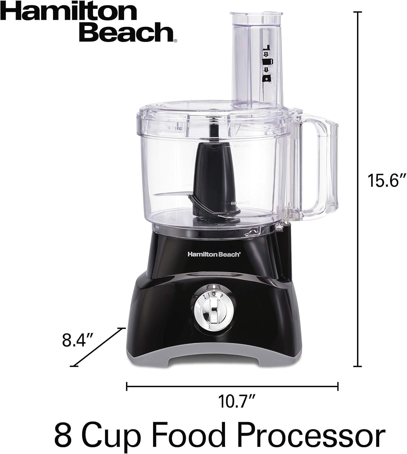 Prepare an endless variety of food fast with the small Hamilton Beach 8-Cup food Processor & vegetable chopper. A stainless steel s-blade for chopping and pureeing, a reversible disc for slicing and shredding, 450 watts and 2 speeds plus pulse offer power and control.