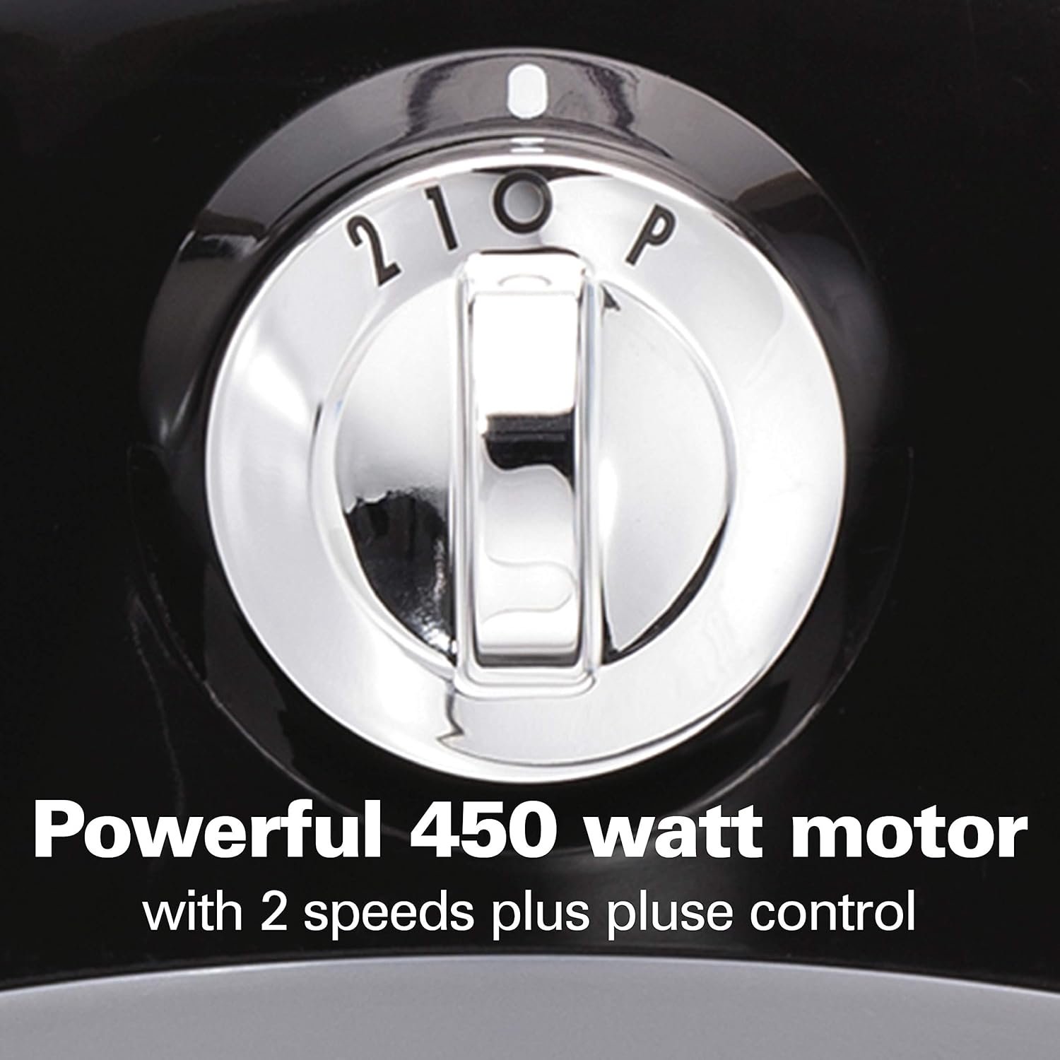 2 SPEEDS PLUS PULSE AND 450 WATTS OF POWER: Food processor features low and high speeds plus pulse for the control you need for a variety of recipes.