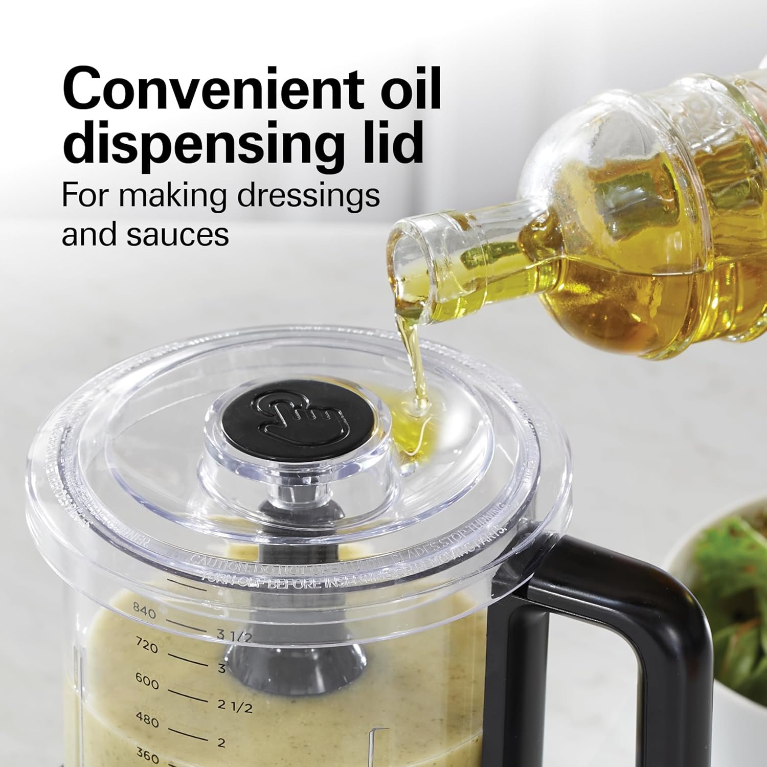 LARGE 4 CUP SEALED BOWL: The bowl is sealed to prevent leaks, so there’s no need to worry about spills. The handle and spout of this small food processor make it easy to pour recipes right into a serving bowl or storage container after use.