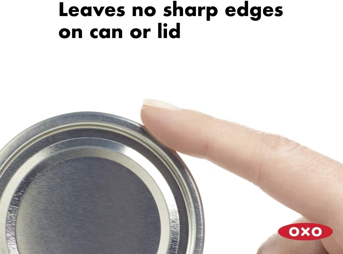 The Hamilton Beach can opener eliminates sharp lid edges by cutting cans along the side for smooth, touchable lids. The OXO can opener features cushioned handles for comfort while opening cans.