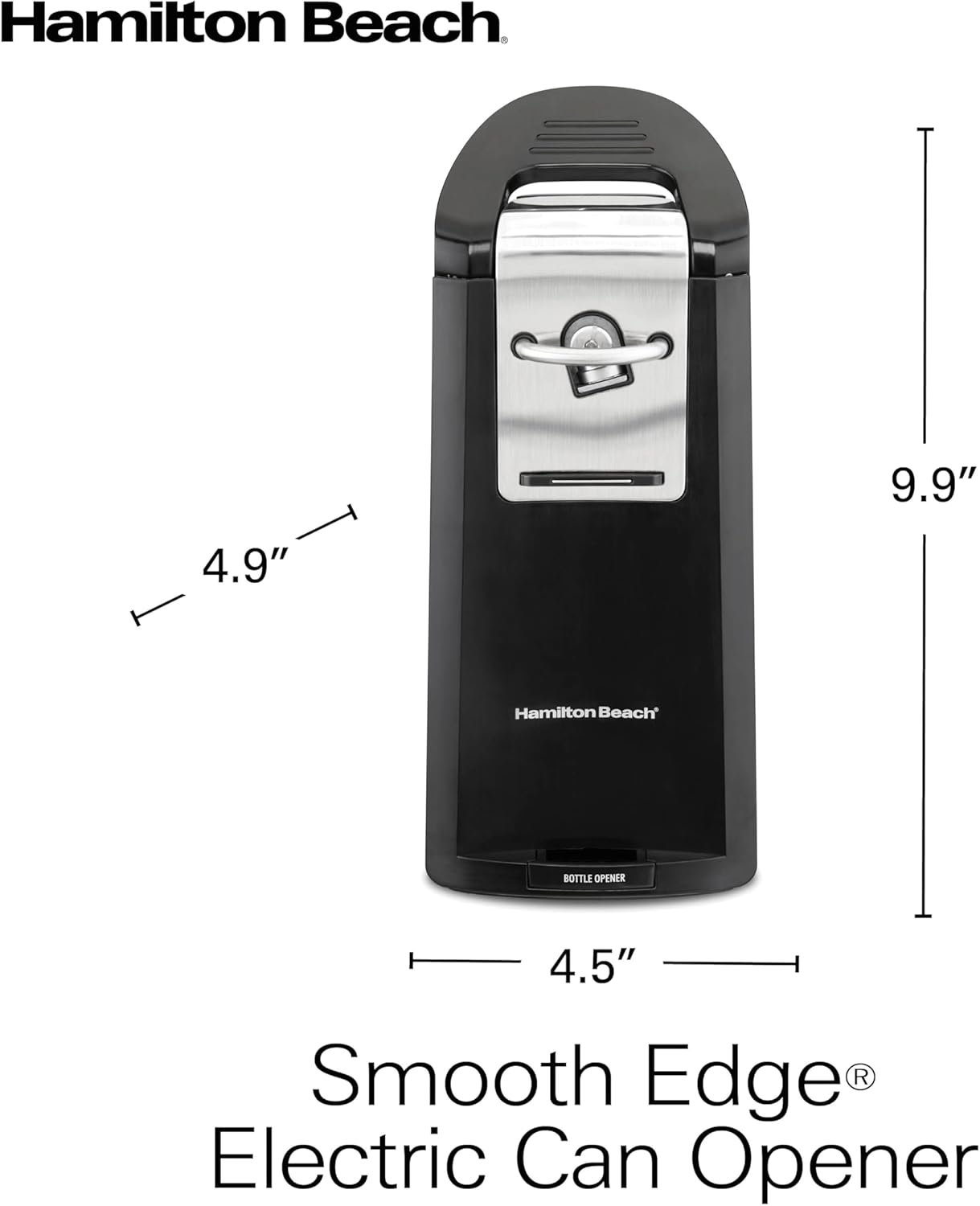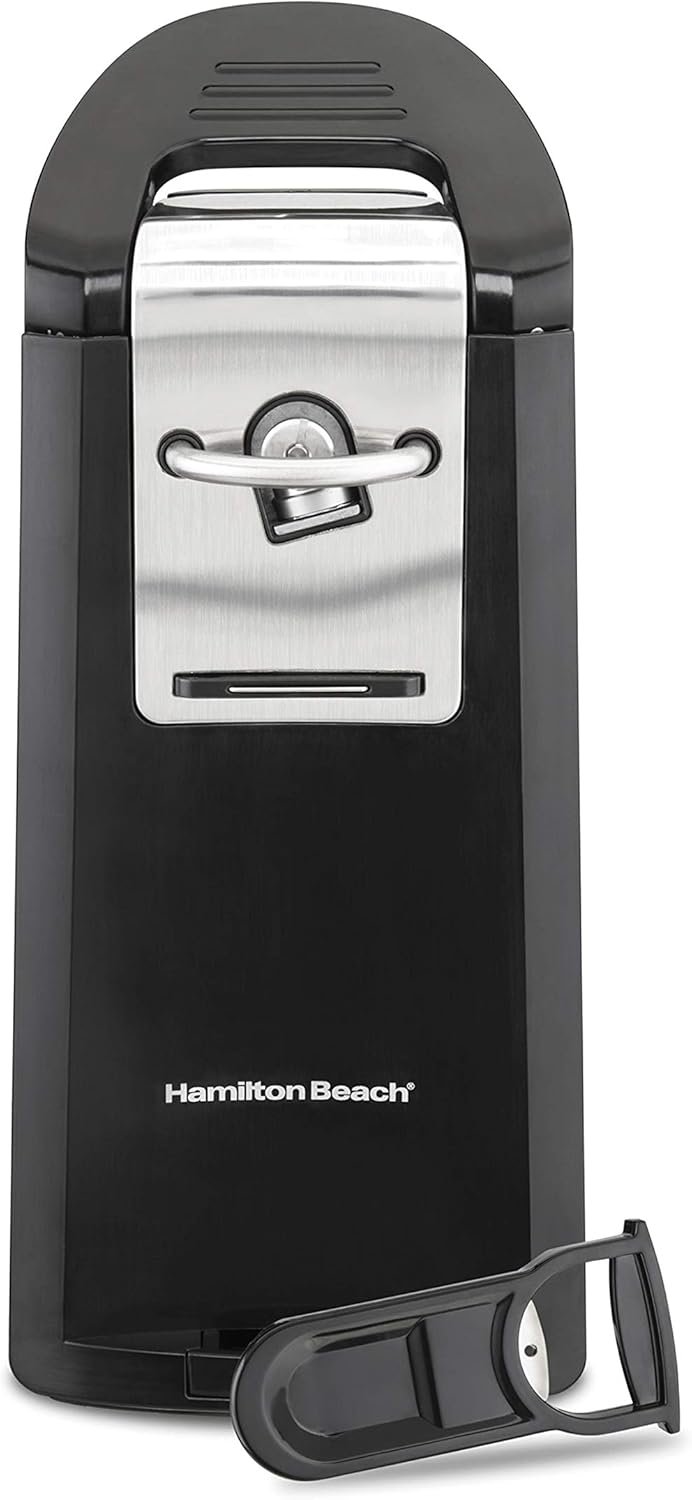 Clear out your drawer full of kitchen gadgets. The Hamilton Beach smooth touch electric can opener not only is designed to open both pop-top and regular cans without leaving sharp edges along the lid; it also features a built-in knife sharpener and removable bottle opener.
