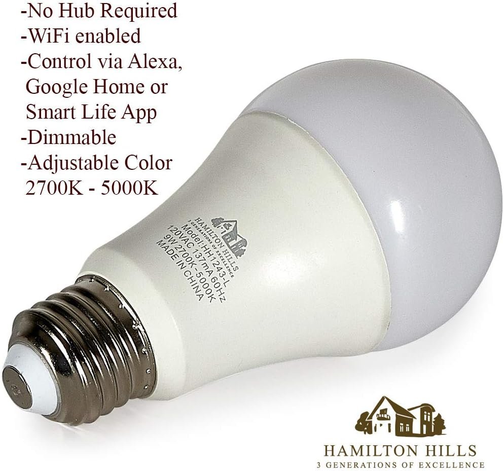 NO HUB NEEDED LED SMART BULBS: Unlike many alternative smart lights, our traditional LED A19 color tunable bulbs do not require a base or hub to connect to. Simply connect to your home WiFi and control via voice command on your Smart Home device or via the Smart Life free downloadable App.