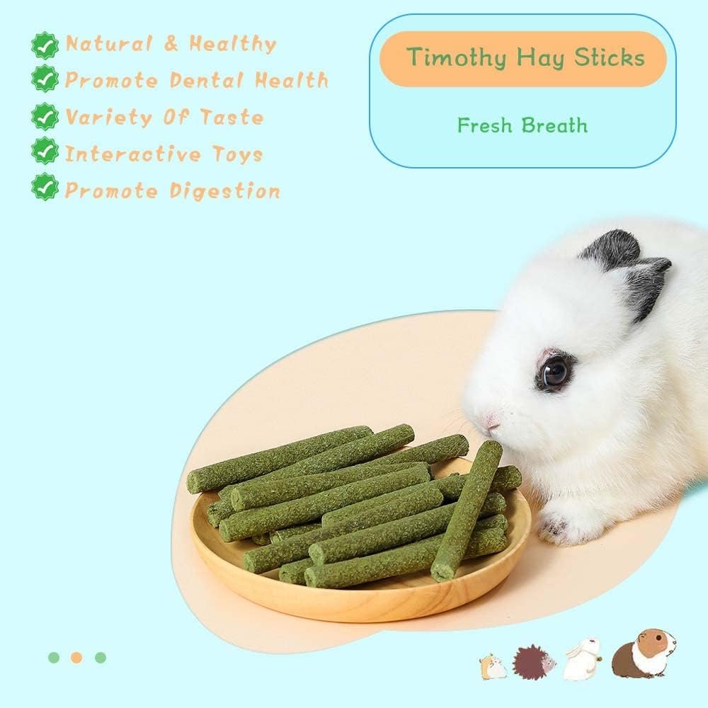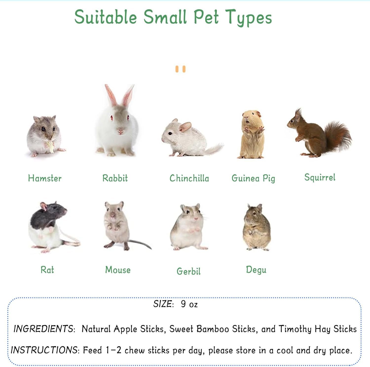 VARIETY OF TASTE: These guinea pig chew toys offer three fun options in one! It contains Apple Sticks, Sweet Bamboo Sticks, and Timothy Hay Sticks. These different guinea pig chew Sticks provide your pet with a varied sensory experience, keeping them interested and entertained.