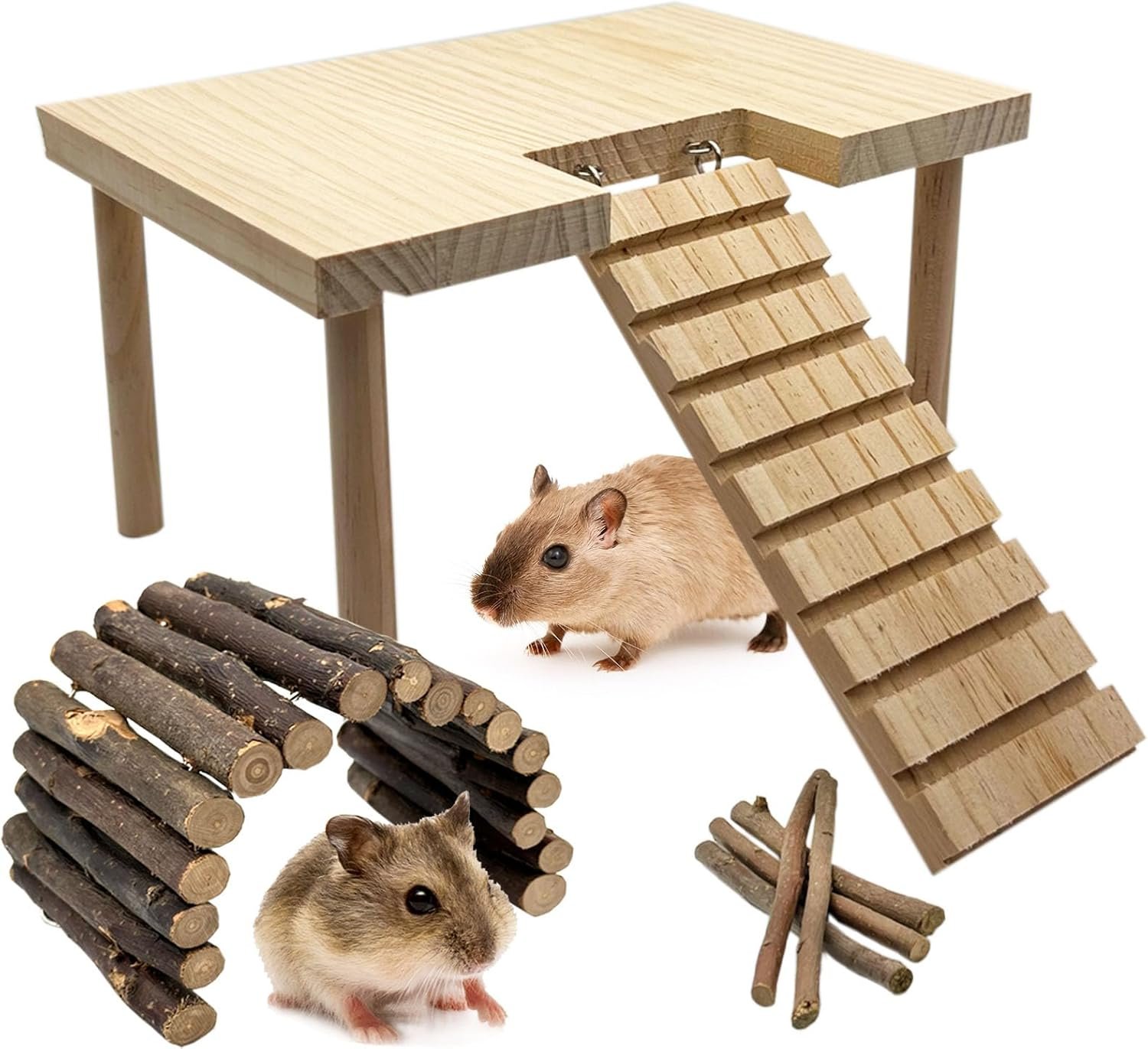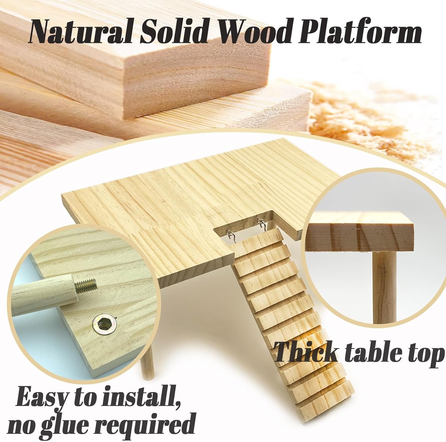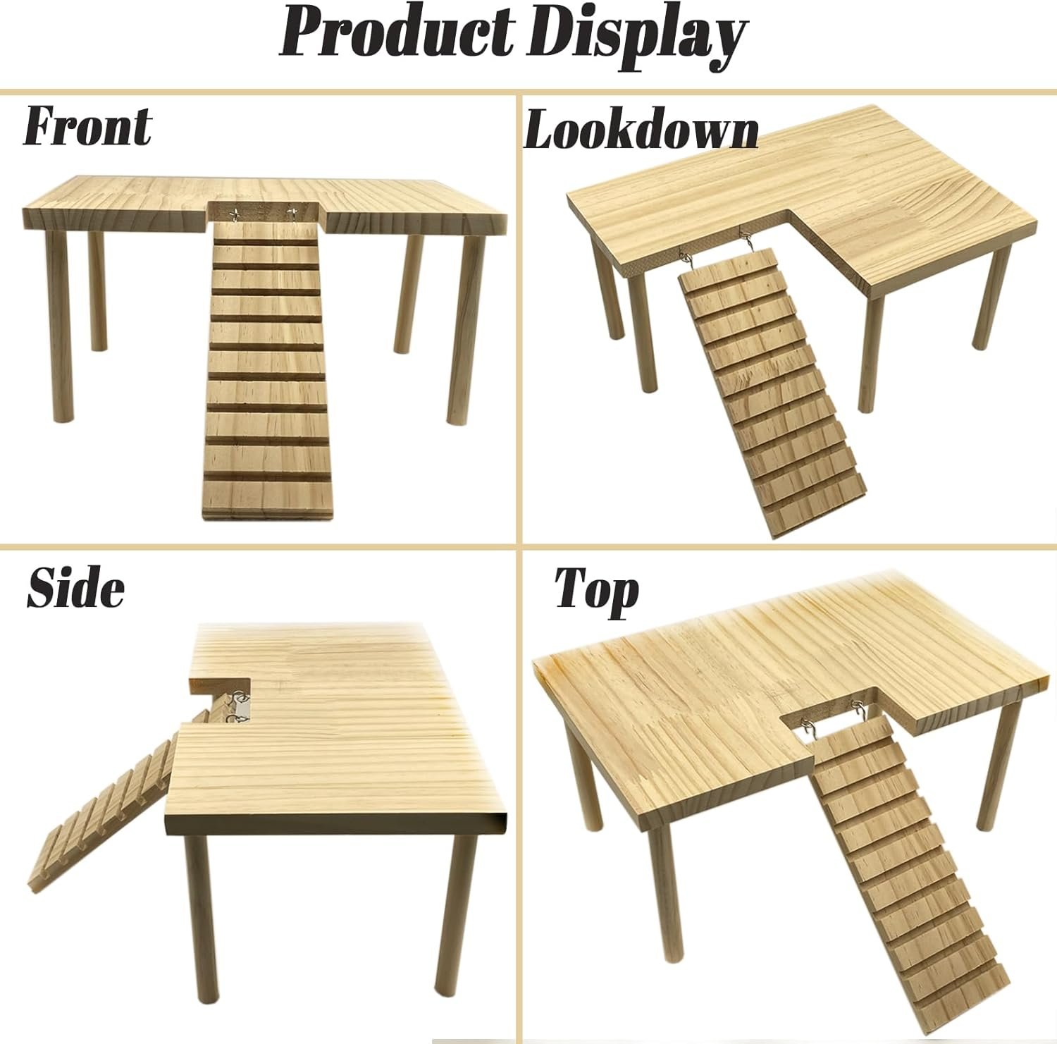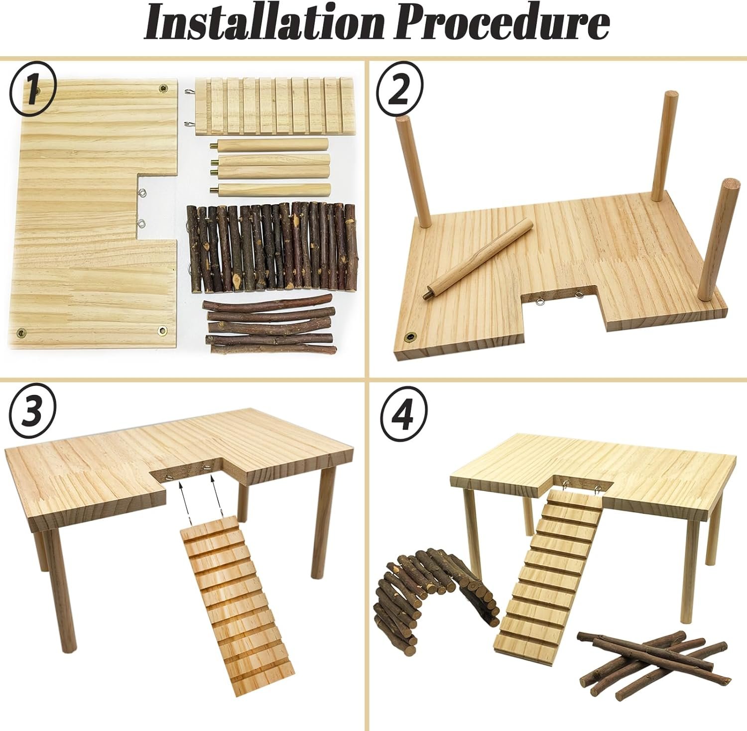 Natural and Safe Materials:Niwaes large hamster platform for cage made of natural wood and firmly. And all the parts are connected with screws, has not been treated with any glue and paint which is safe for your pet to chew, climb and play