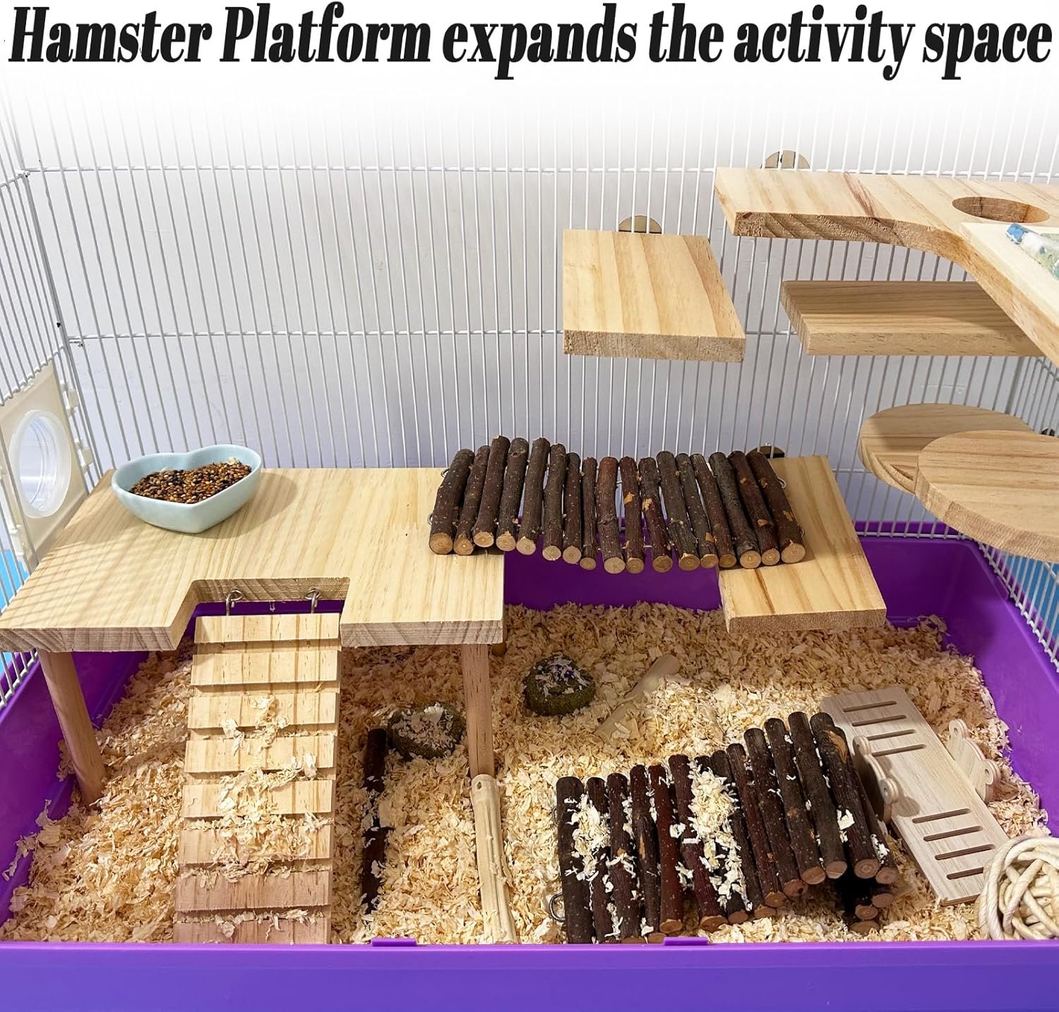Wide Application: Designed for various small pet such as hamsters, Syrian hamsters, gerbils, guinea pigs, squirrels, and chinchillas. This versatile platform fits most cages or habitats, adding functionality and aesthetics to your pet’s living life