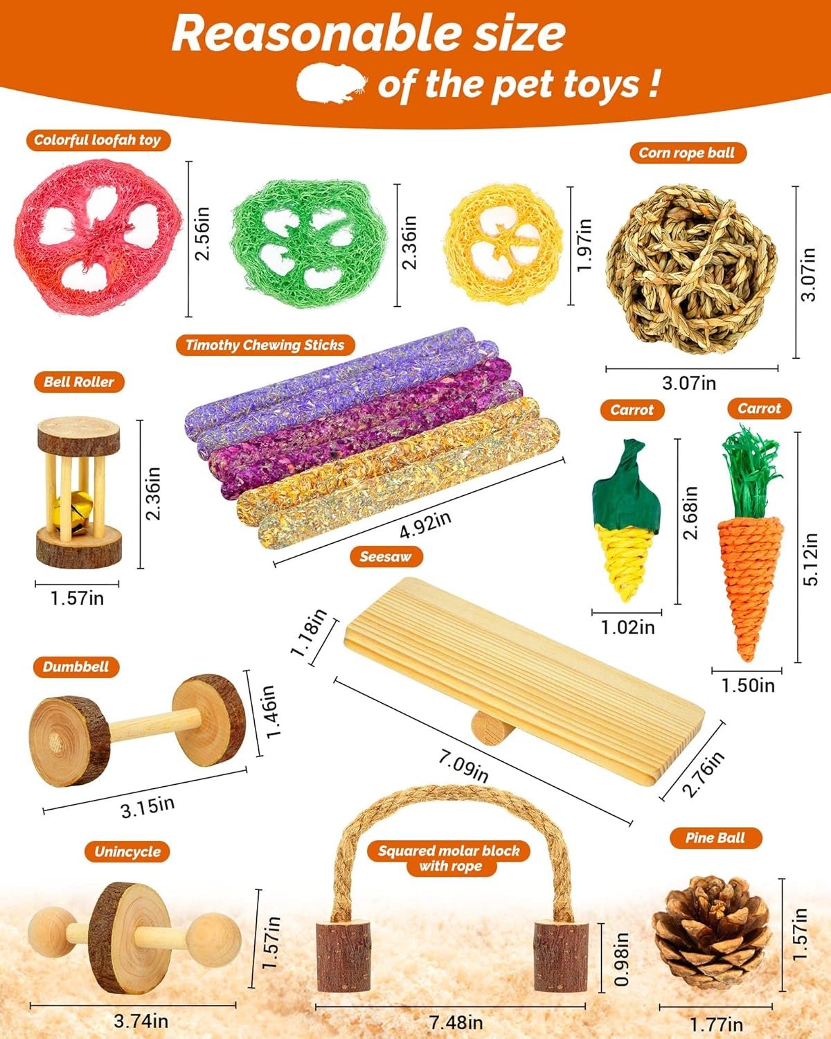 OVERTANG 18 Pcs Hamster Chew Toys for Teeth for Rabbit, Chinchilla, Guinea Pig, Hamster