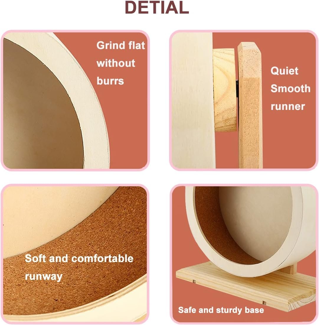 【Noiseless】 Designed by wooden with a very low noise level,and dual ball bearings, so can quiet keep it on spinning smoothly, even your little friends working out on the hamster exercise wheel in the night time, you still have a sweet sleep.