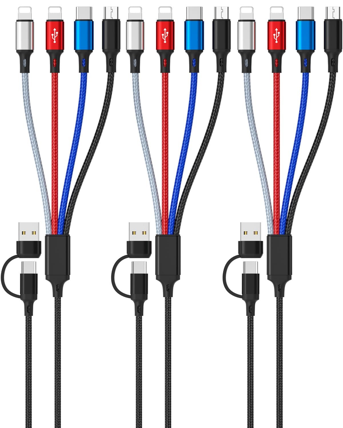 [ Universal Charger Cable ] Multi USB cable works with Type-C/micro USB/ Lighting devices. Compatible with iPhone 15/15 Pro/15 Max/15 Pro Max/ 14 / 13 / 12 / 11 / SE / Xs Max / Xs / Xr / X / 8 Plus / 8 , Pad Air / Pro. Micro-USB for Samsung Galaxy S7/S6/S4 most Android phones & Wireless Accessories. Type-C Compatible with Samsung Galaxy S10+/S10S9/S9+/S8/S7, Huawei, HTC, SONY, OnePlus, Moto.