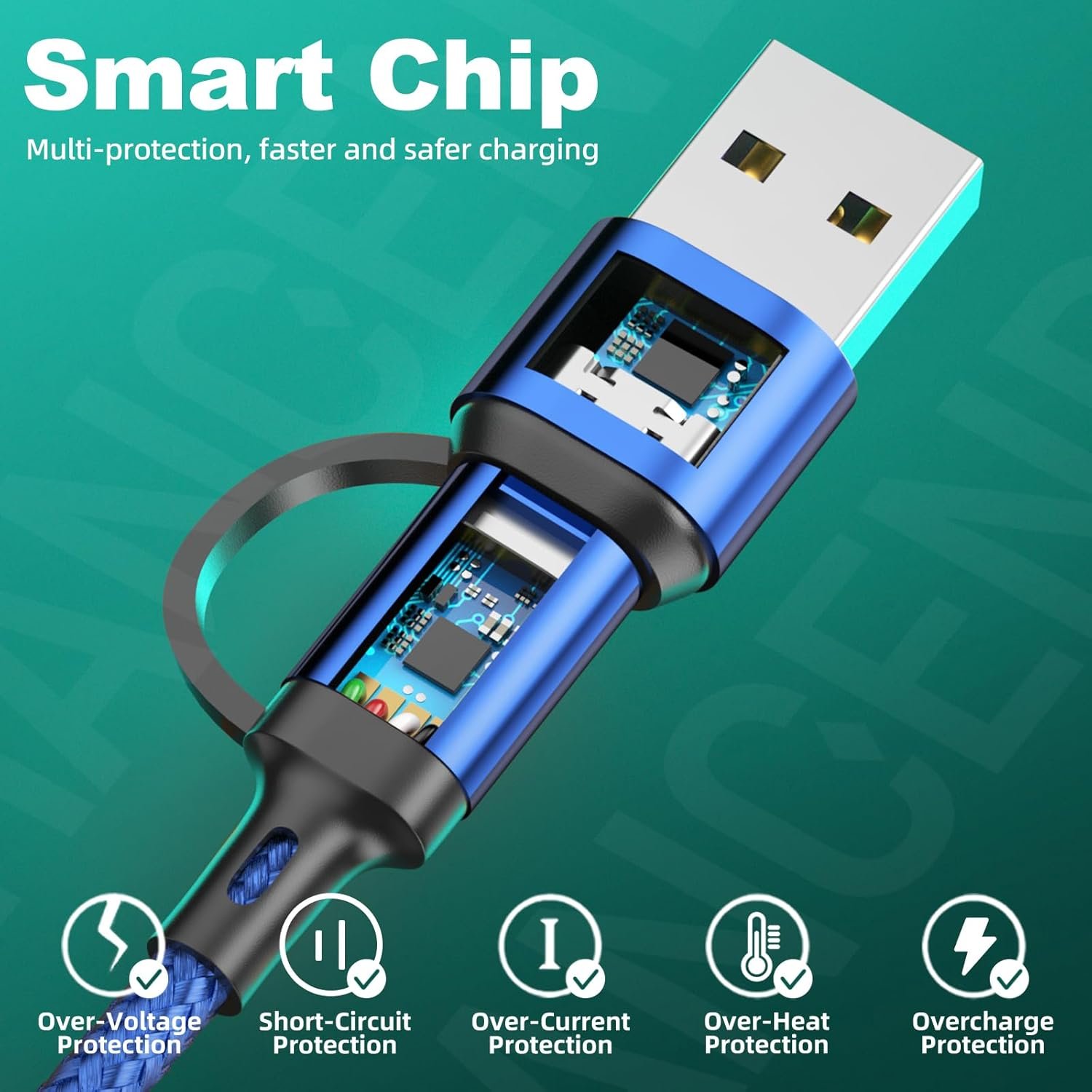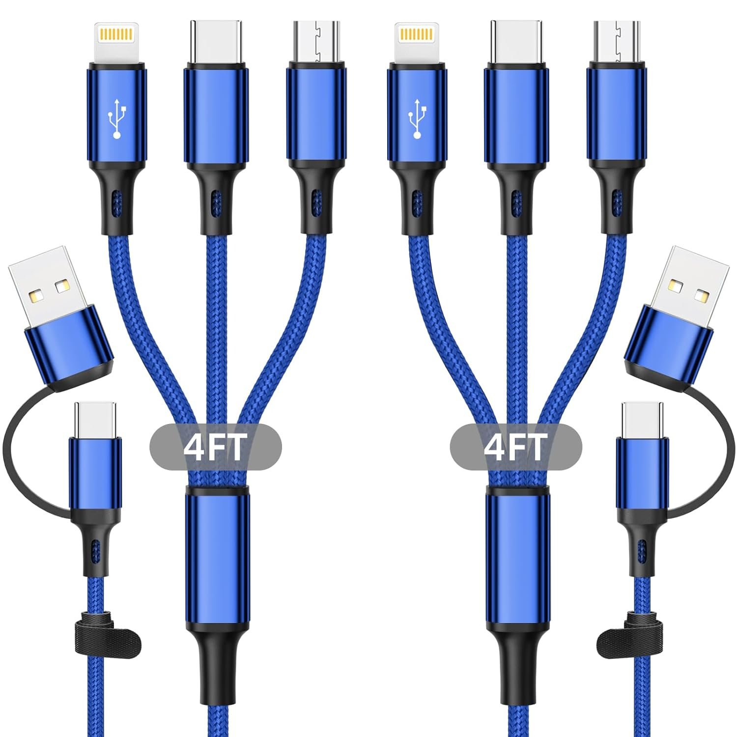 【What You Get】 2 packs 4FT 6 in 1 multi charging cable. We provide this multiple USB charging cord adapter with 12-Month warranty and 24/7 customer service, if you have any questions, we will resolve your issue within 24 hours.
