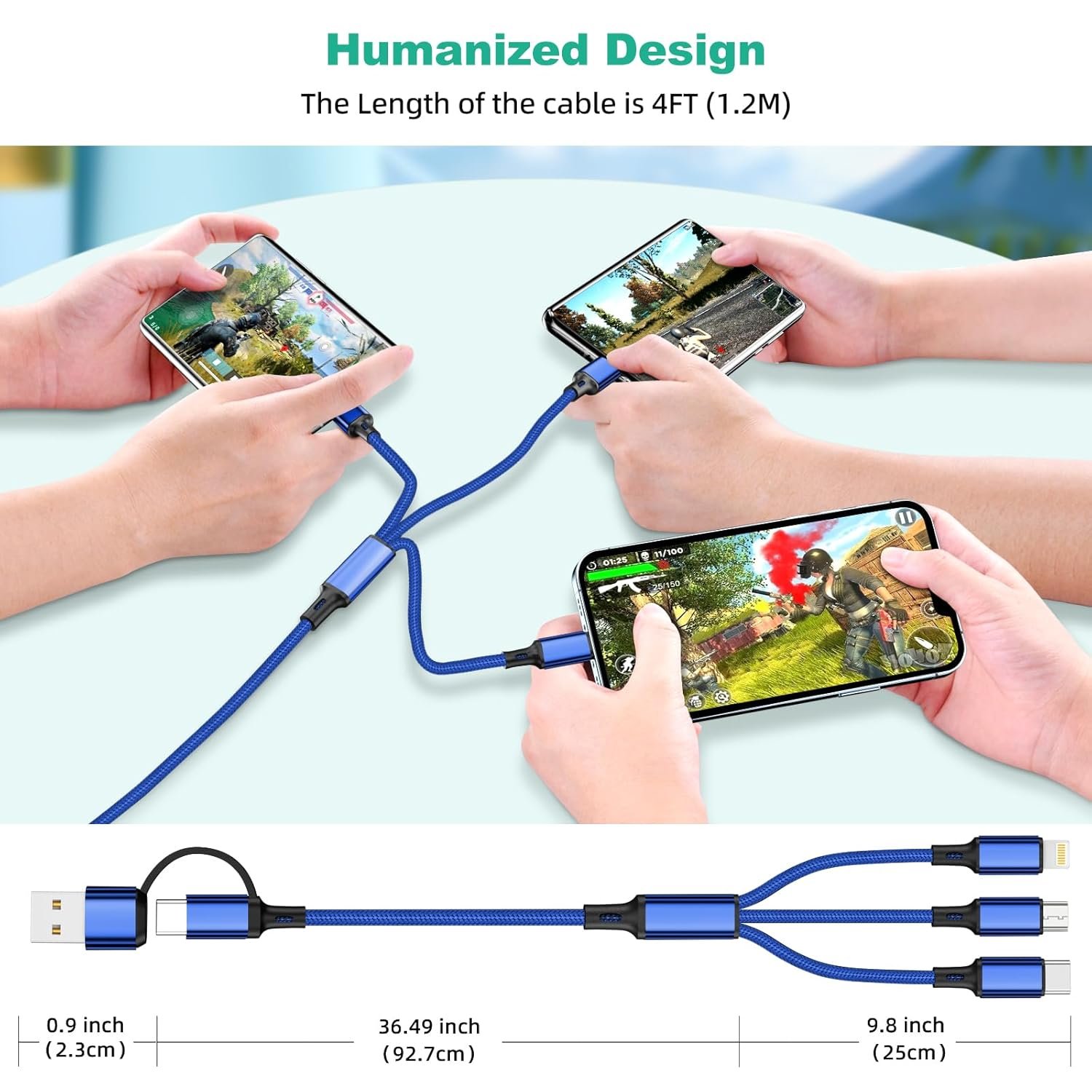 【Convenient Length & Buckles】4FT Multiple phone charging cable ensure you to charge your devices at ease with a comfortable length, and with sticky buckles for organization, you can shorten the cable to any length you want, and easy to organize it in your handbag or backpack.