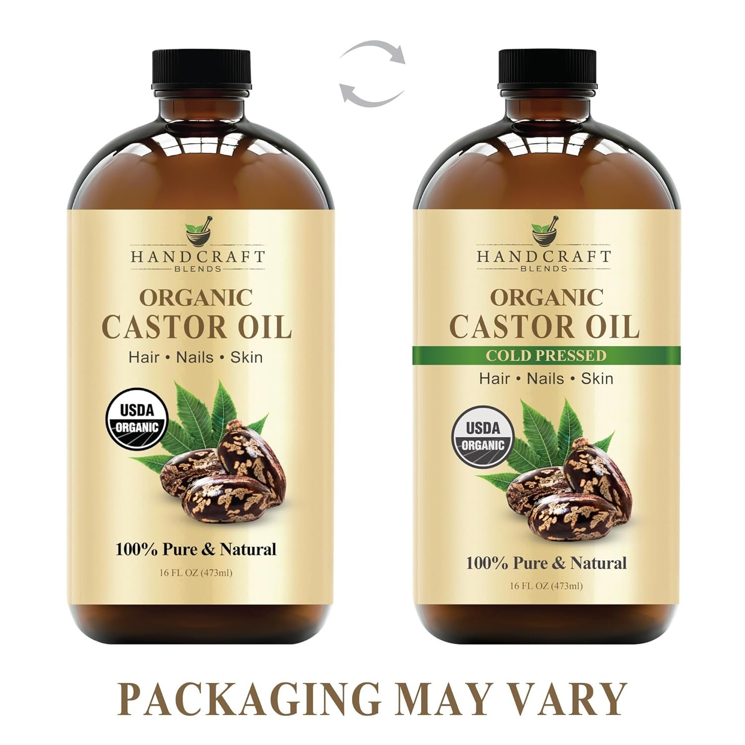 Handcraft Blends Cold-Pressed Organic Castor Oil in Glass Bottle – 16 Fl Oz – 100% Pure and Natural – Premium Grade Oil for Hair Growth, Eyelashes and Eyebrows – Carrier Oil – Hair and Body Oil