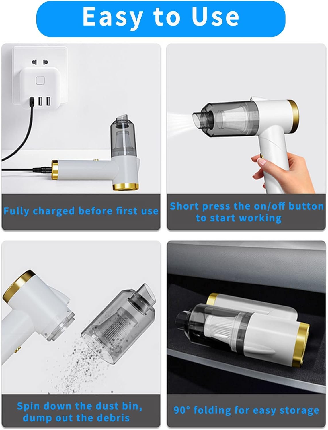 【Mini Size, Folding Design】: Unique 90°foldable handle design, making the handheld vacuum a compact size, can be easily stored in the interior space of the car.