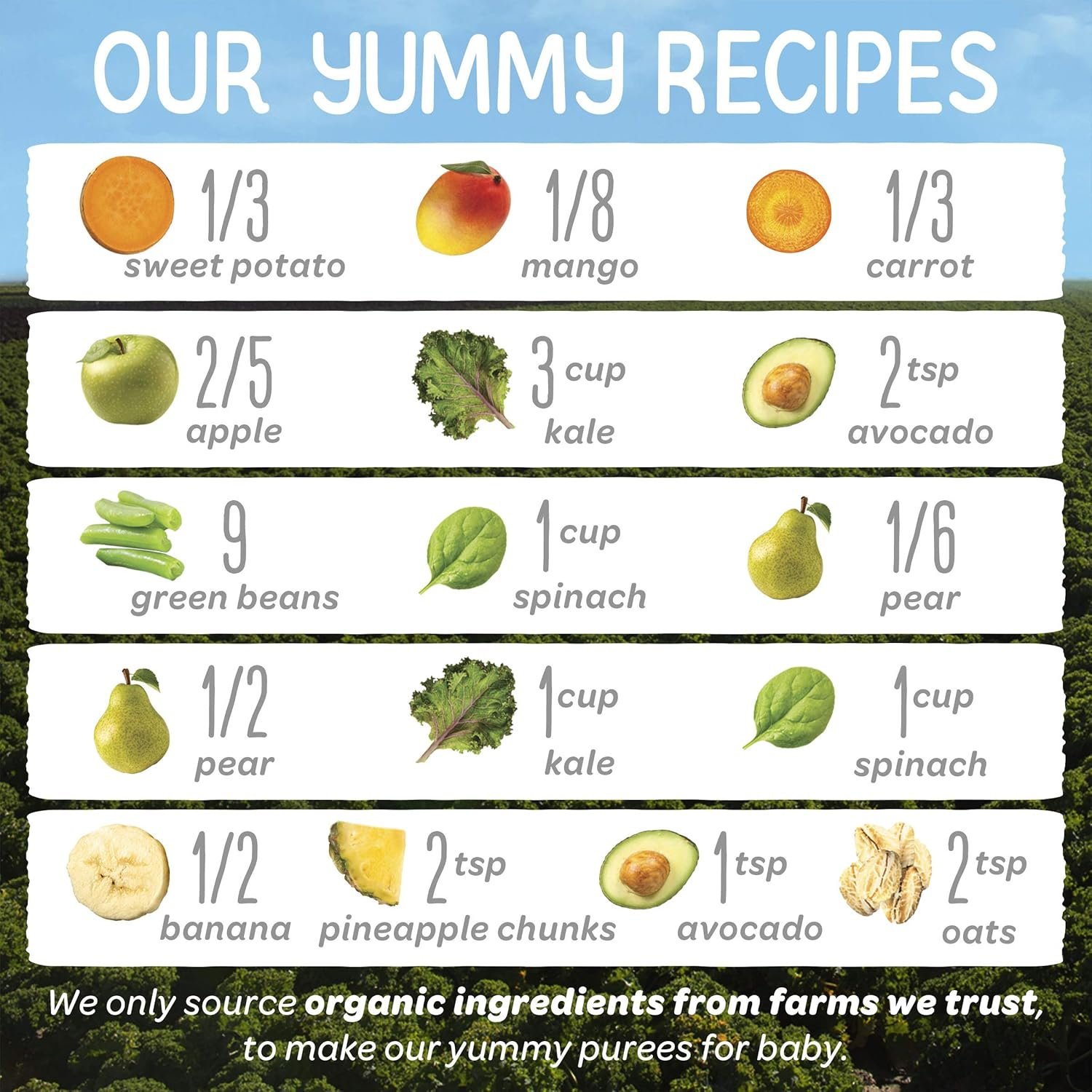 When it comes to caring for your baby, transparency is everything. That’s why we bring you Clearly Crafted, and proudly share stories about the people and places we trust to grow our organic ingredients. Best all of all, our clear packaging lets you see each delicious recipe, in all its vibrant color. This is goodness you can see.