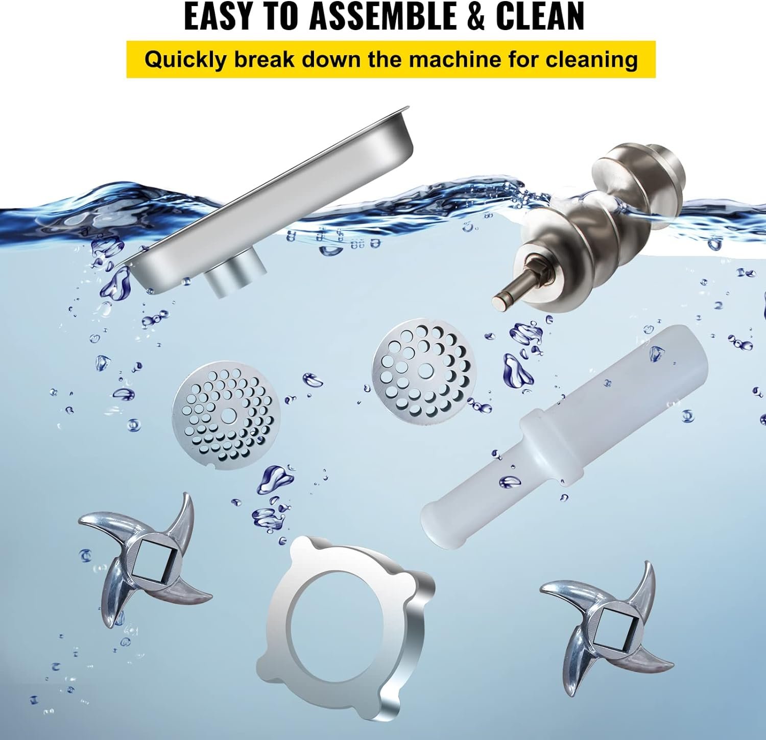 Premium Quality: Made of food-grade stainless steel, wear-proof, and rust-proof, including the outer casing, top tray, and blades, our commercial meat grinder provides you reliable using experience with its gears being able to cut the meat into various kinds you desire. Its polished surface and fine workmanship make it beautiful in appearance. And it is easy cleaning and stands up for a longer working period.