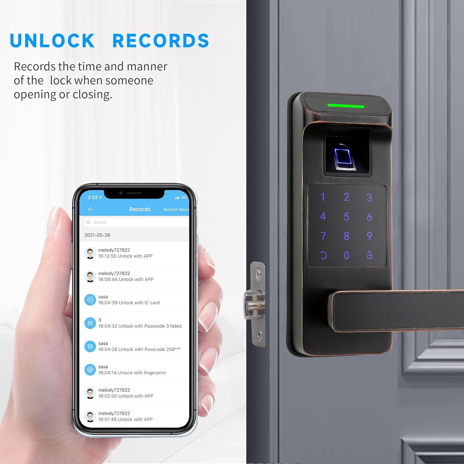[All-in-1 Fingerprint Door Lock] APP control + Fingerprint + Passcode +IC Cards (Include 3) + Backup Keys. Work with Alexa and Google Assistant & Support Voice Control (Need to pair with gateway, sold separately)