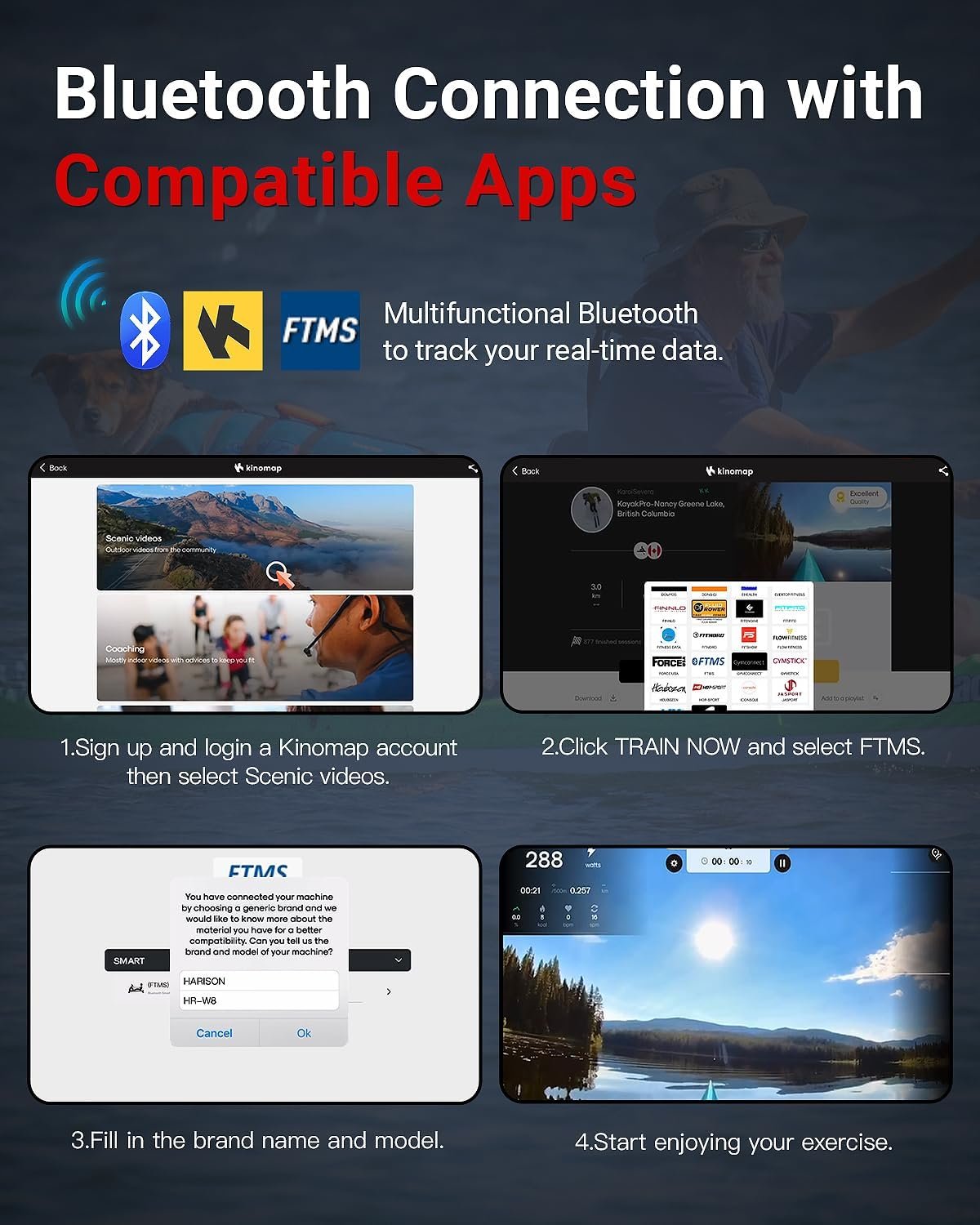 2 in 1 LCD Monitor with APP Connectivity: HARISON water rower supports APP connectivity, the multi-functional LCD monitor screen can track your real-time exercise data include Count/Time/Distance/Calorie/SPM/Scan, enables you to fully control your exercise routine. The 2-in-1 tablet holder allows you to enjoy entertainment while working out, enhancing the overall exercise experience
