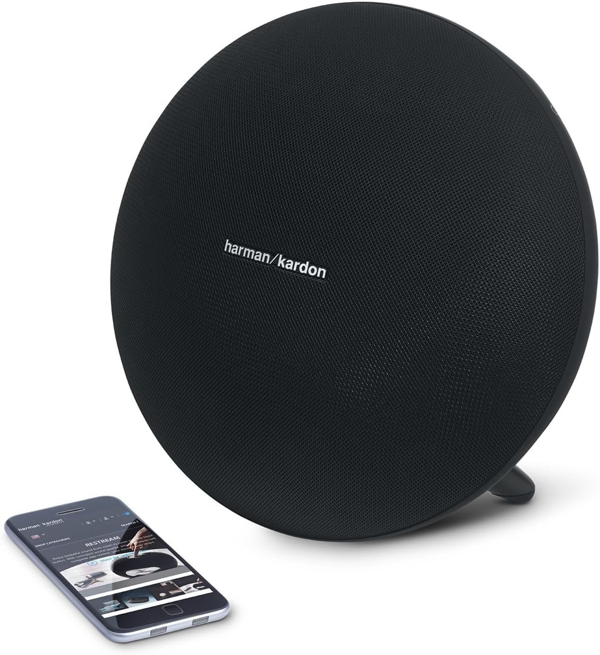 Crafted with high-end materials, the Harman Kardon Onyx Studio 3 is a full-featured, portable Bluetooth speaker that delivers powerful audio with the iconic Harman Kardon design. You can enjoy music up to 5 hours of playtime thanks to the rechargeable battery and wirelessly connect two Harman Kardon Wireless Dual Sound enabled speakers together to elevate your music listening experience. Users will be able to make clear phone calls with the speaker from its built-in microphone which is powered by noise and echo cancelling technology. The exquisite design will enhance the style and compliment any room.