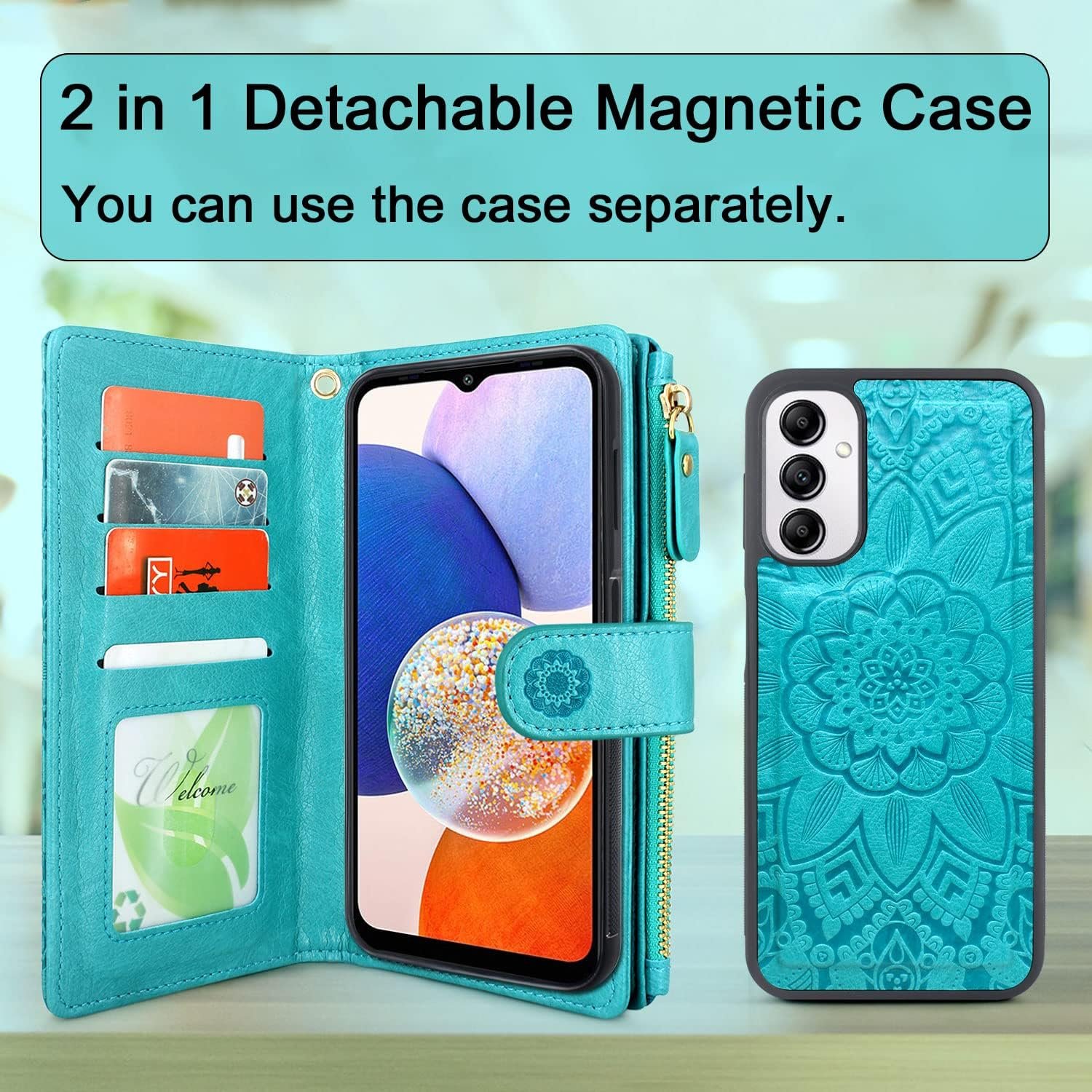 1.Detachable magnetic case cover, you can take the phone off from the wallet part easily. Removable shockproof tpu+pc back case, keeps your phone safe from accidental drops.