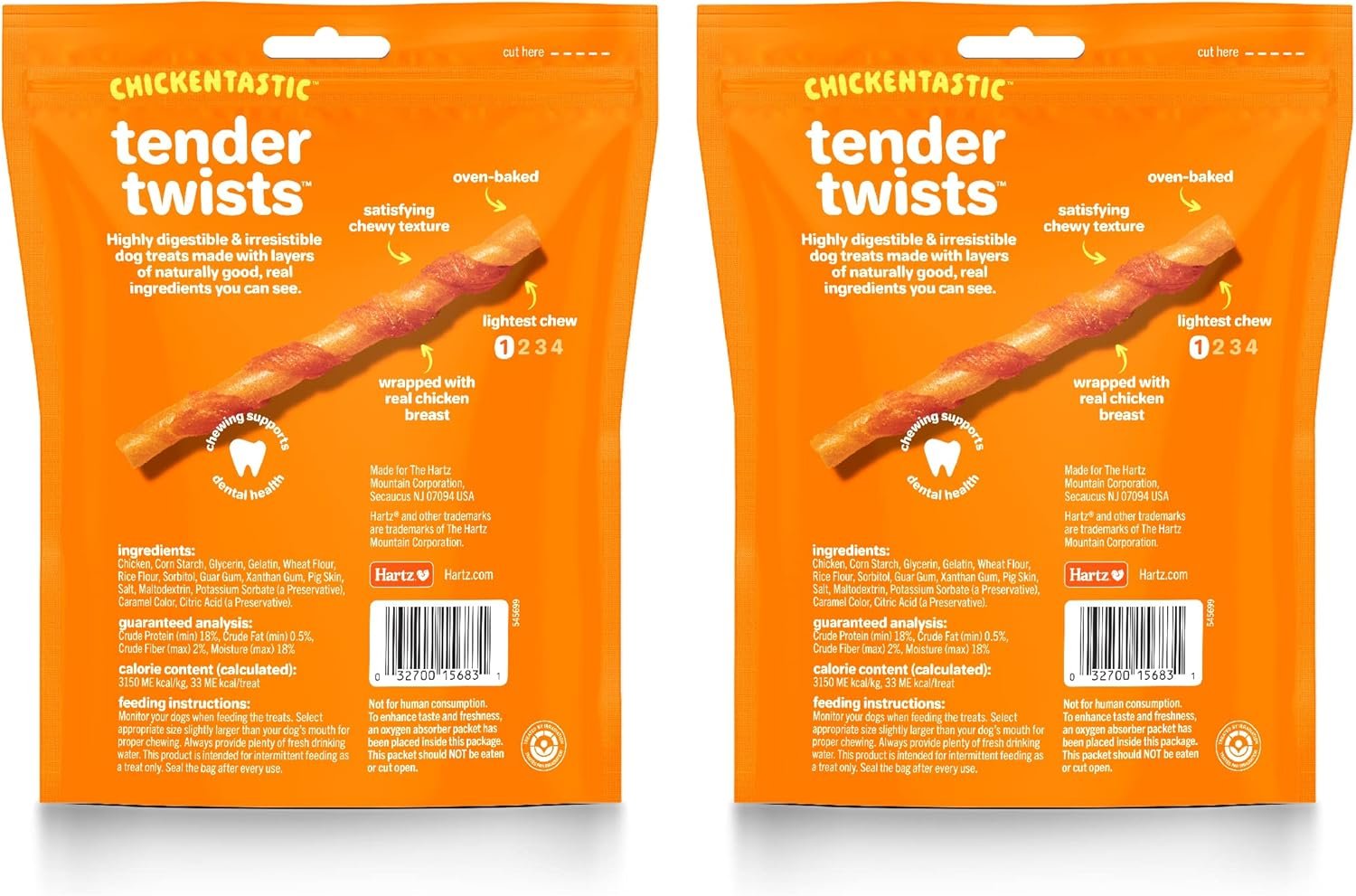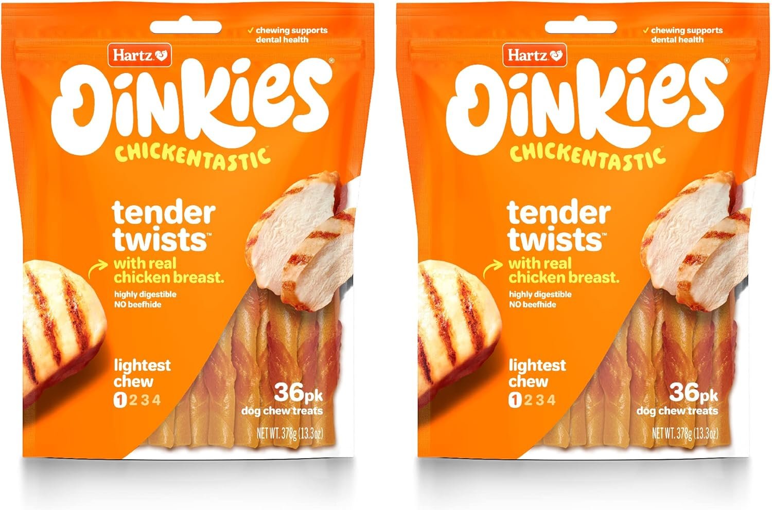 Keep your canine companion happy and occupied with Hartz Oinkies Tender Treats Real Chicken Dog Treats! These irresistible, savory treats are wrapped in 100% real chicken and flavored to paw-fection. What’s more, they are rawhide-free, making them highly digestible. The chewy texture makes these chews a great choice for older dogs with sensitive teeth and smaller dogs with little mouths!