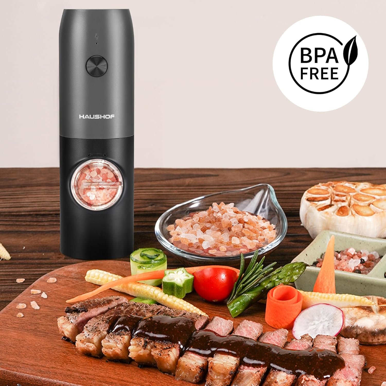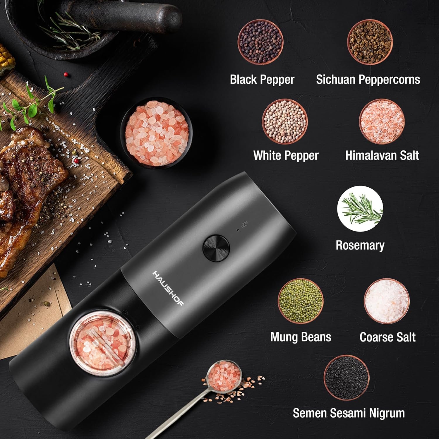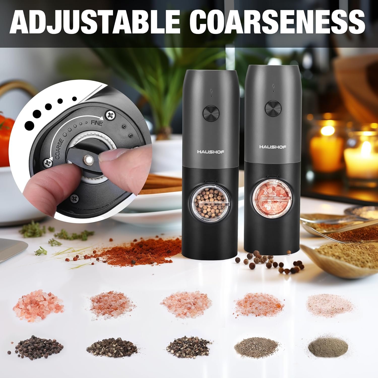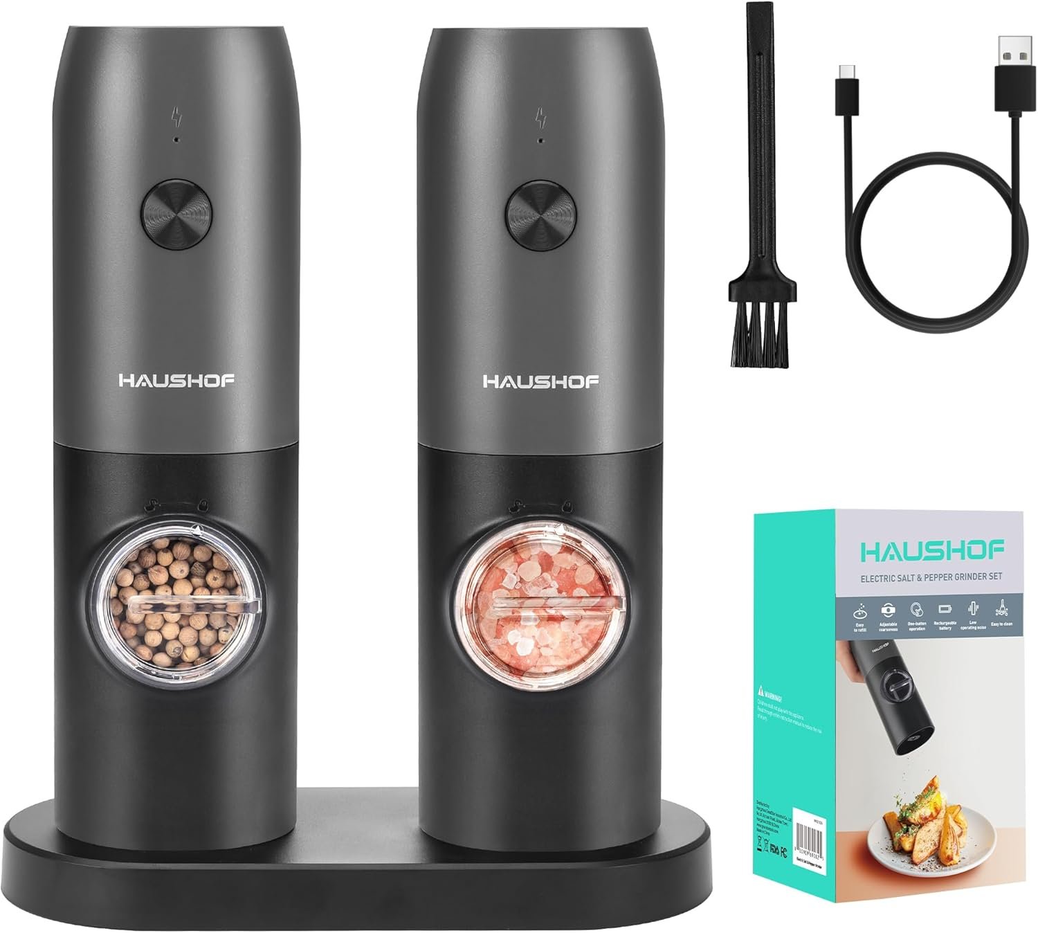 HAUSHOF 2 Pieces Electric Salt and Pepper Grinder Set