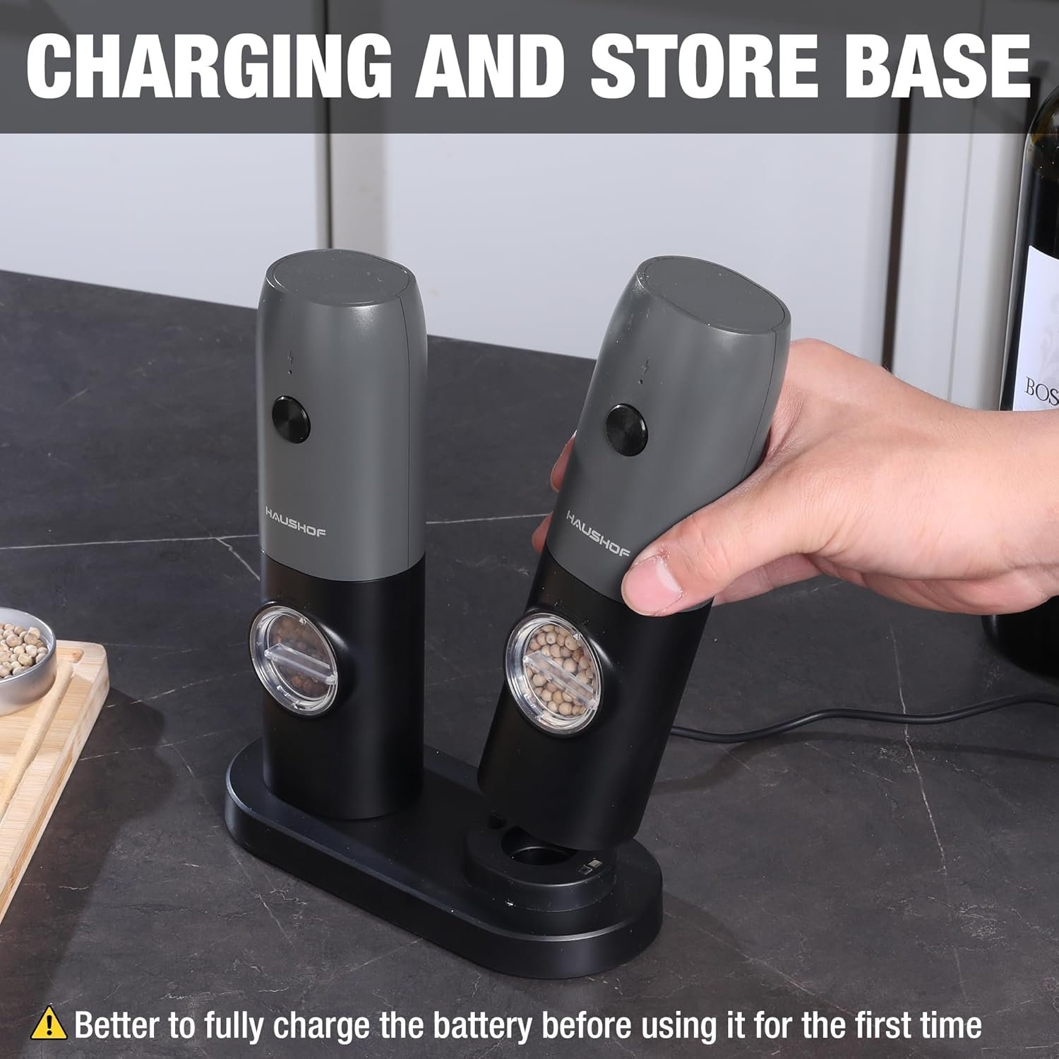 Included storage base not only hold and charge the grinders, but also stores any leftover powder to keep your kitchen clean and spices fresh, just press the button and enjoy your ground spices