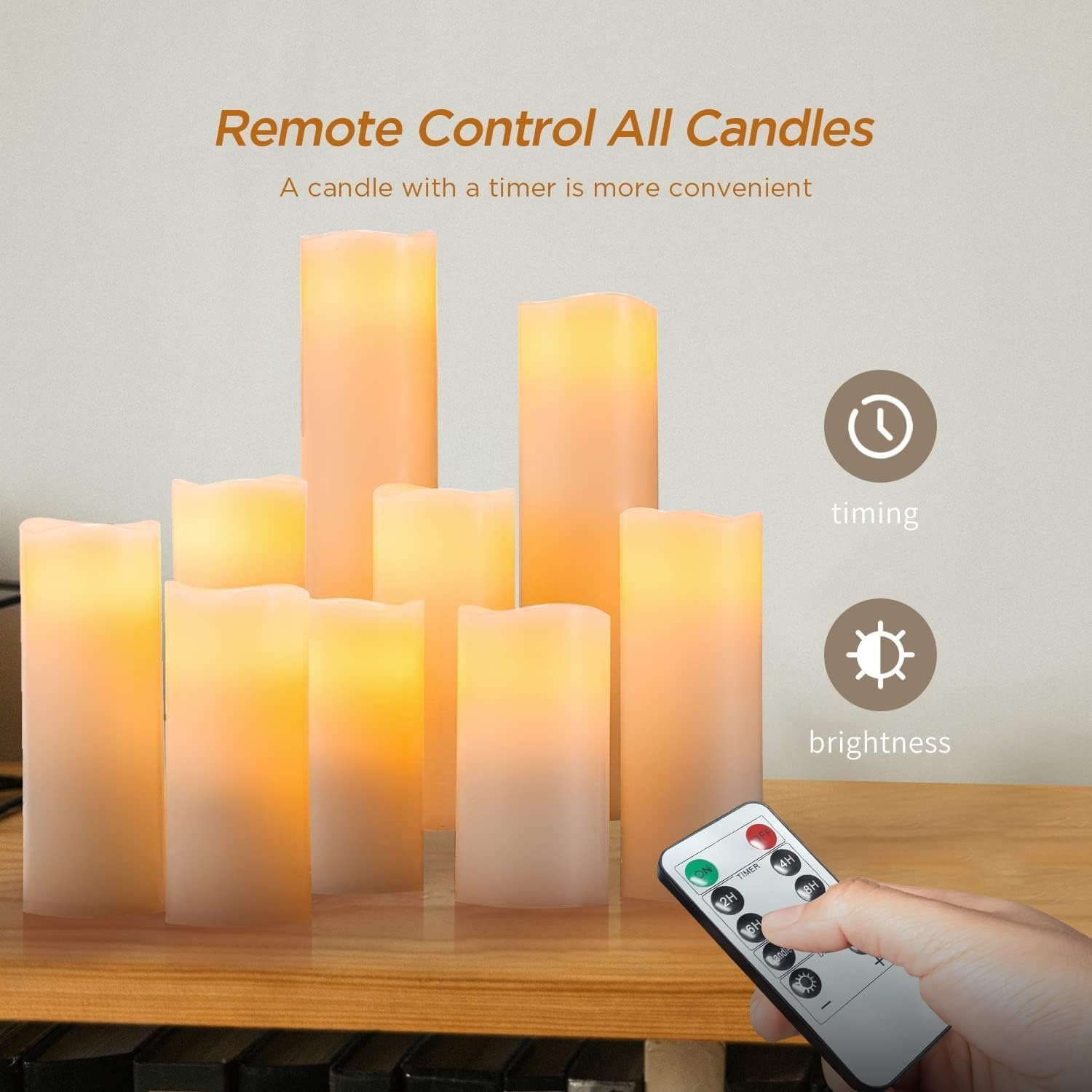 EASY & CONVENIENT OPERATION: With One Remote Control, You Could Control All the battery operated candles of Different Sizes. Thease flameless candles with remote and Timer feature allows you to set 2H | 4H | 6H | 8H, timed to automatically turn on and off. Will Cycle Every 24 Hours