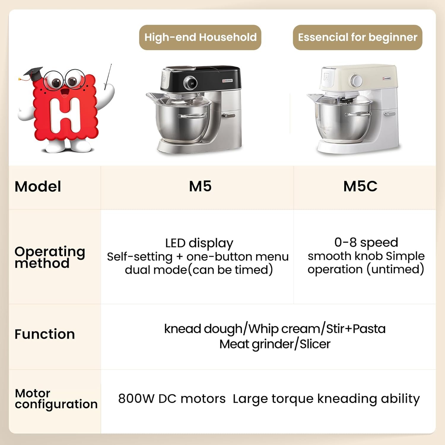 đăLED Touch Screen Exclusive DesignăHAUSWIRT stand mixer adopts the exclusive LED intelligent touch display, greatly improving the intelligence, the home food mixer adopts 4.5-inch full screen display, time and gear real-time display, intelligent timing to free you from the watchful eye, and features two modes, quick mode and self-setting mode for convenience, the food is quickly presented to your table!