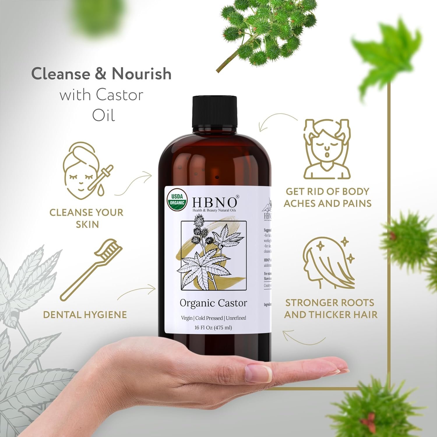 Organic Castor Oil: Natural, cold-pressed, virgin, unrefined, hexane-free, and usda certified organic by onecert. It is vegan, cruelty-free, and has not been tested on animals.