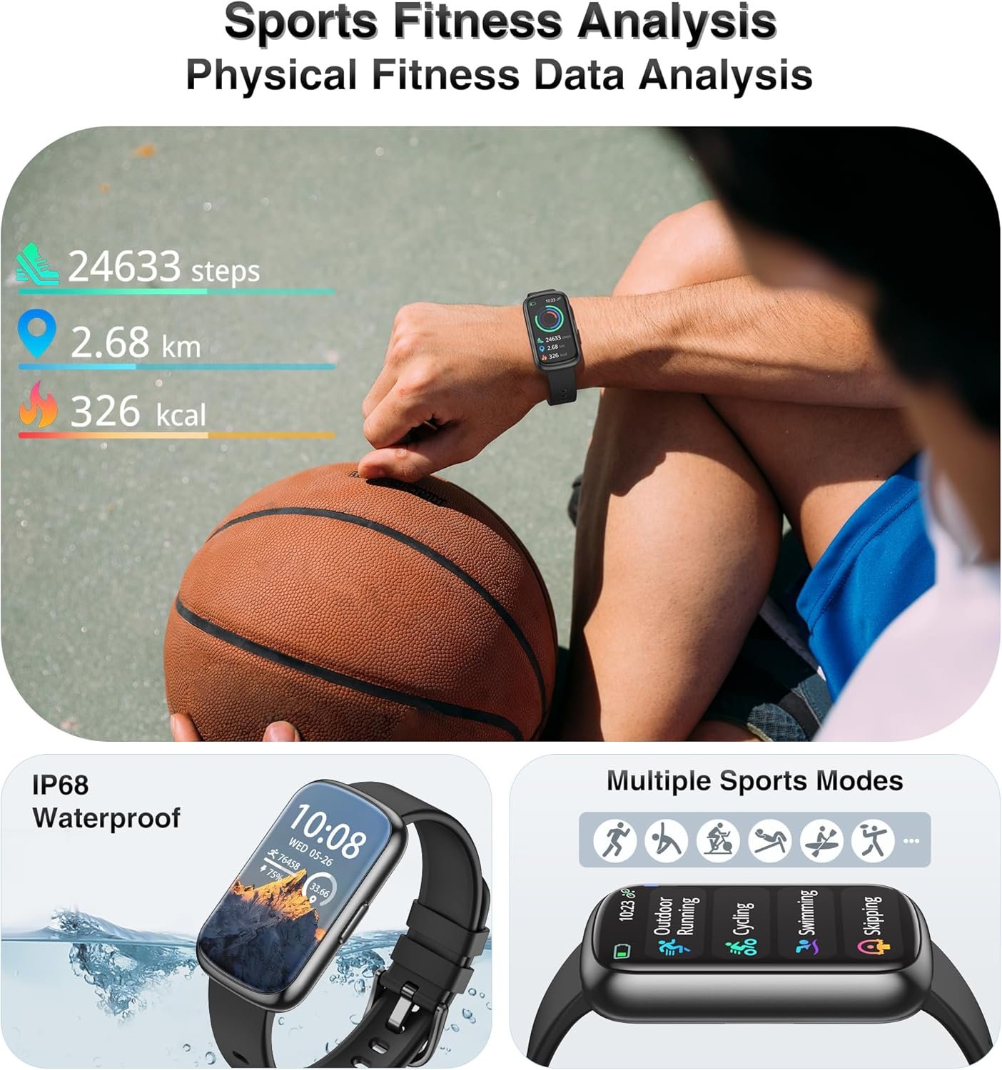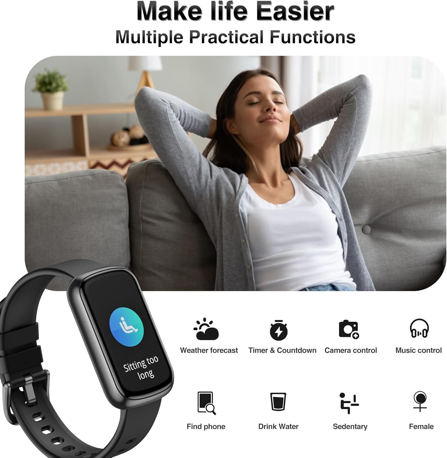 【24/7 Health Monitoring & Sleep Tracker】This activity & fitness trackers can measure your heart rate, blood oxygen and blood pressure in real time for 24 hours, and the sleep tracker function can continuously record your REM sleep, light sleep, and deep sleep status. It also has functions such as drinking water reminders, sedentary reminders, and female menstrual management, which can help you adjust your lifestyle.Please wear it correctly and tightly on your wrist for accurate measurement.